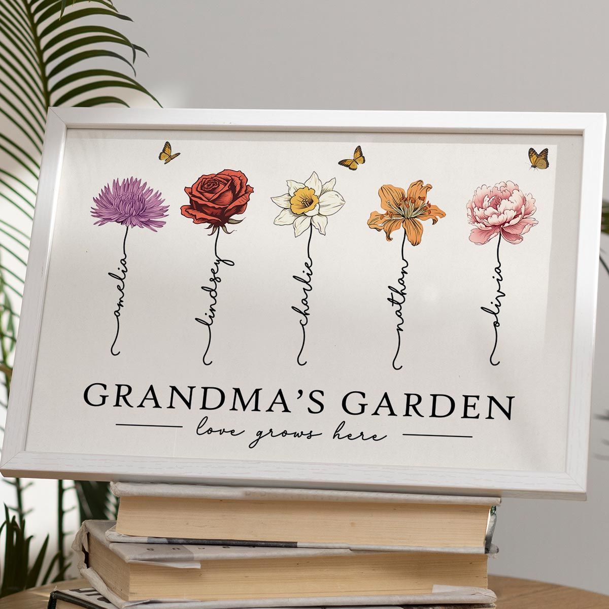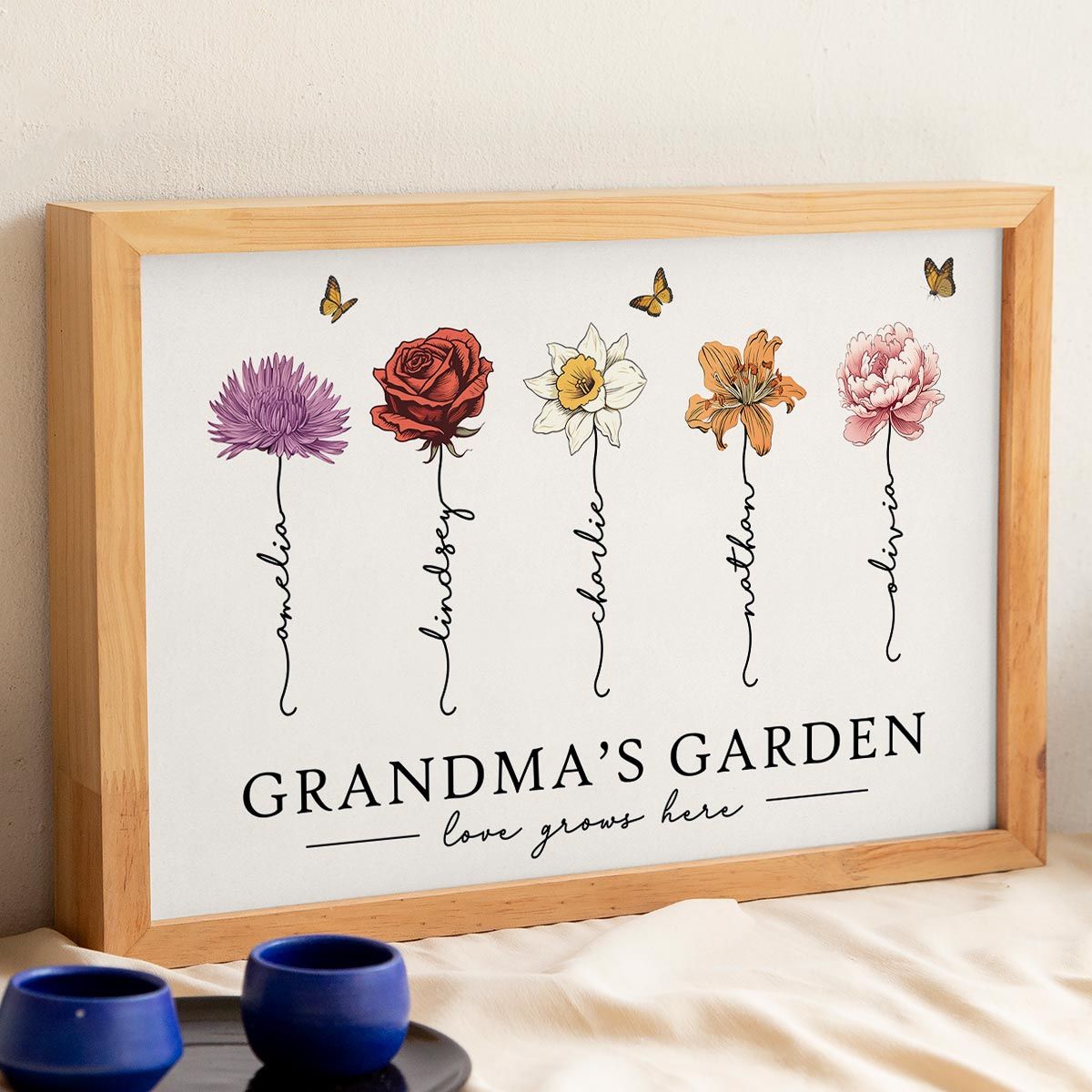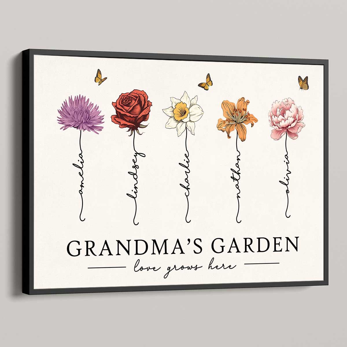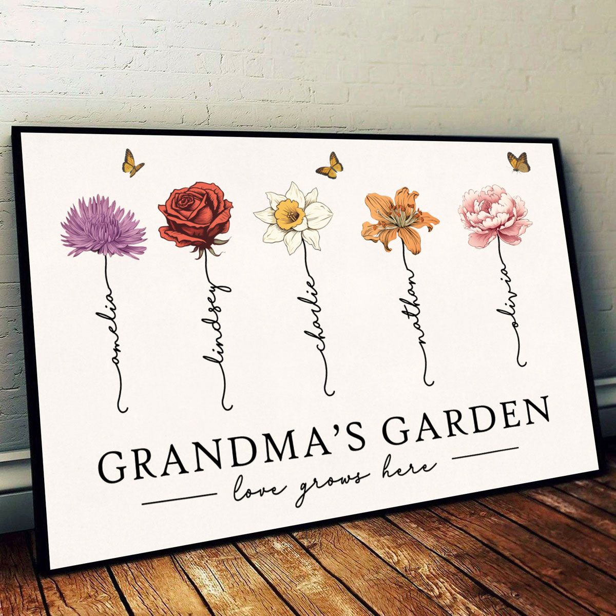 Grandma‘s Garden Love Grows Here Beautiful Birth Month Flower Gift For Grandma Mom Personalized Canvas