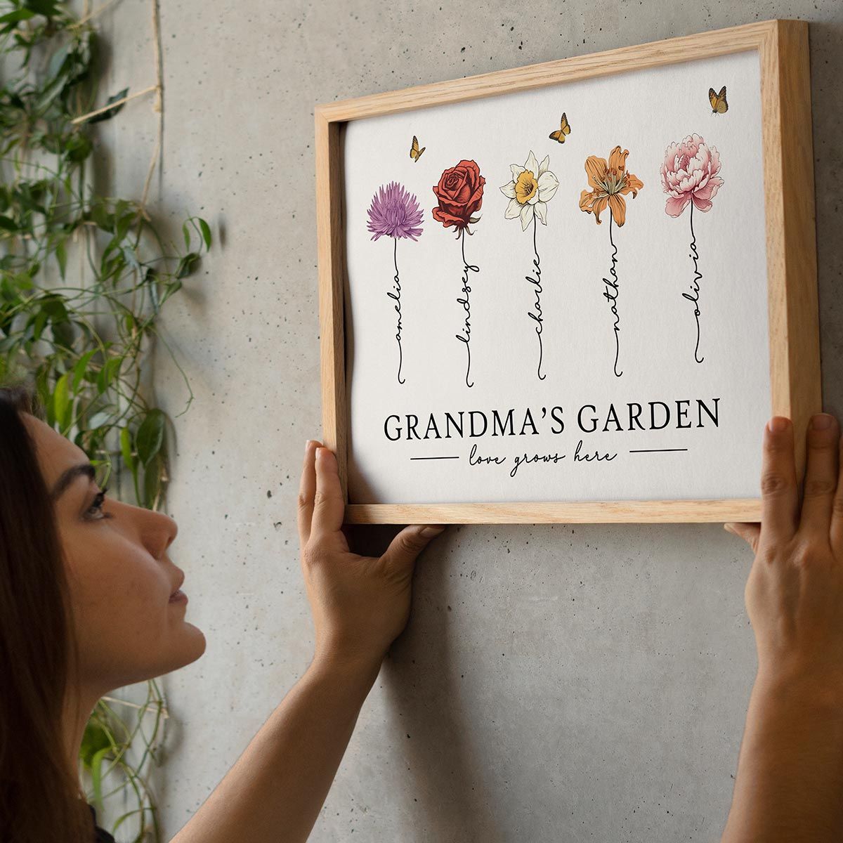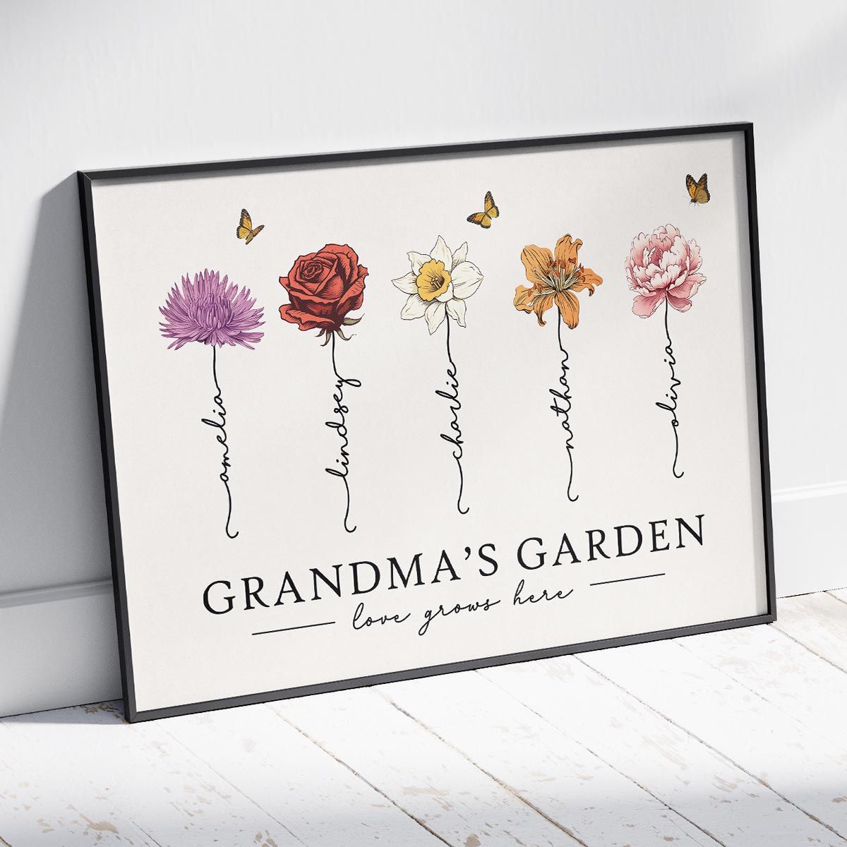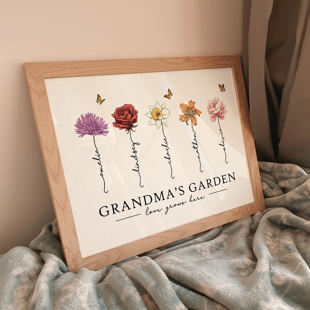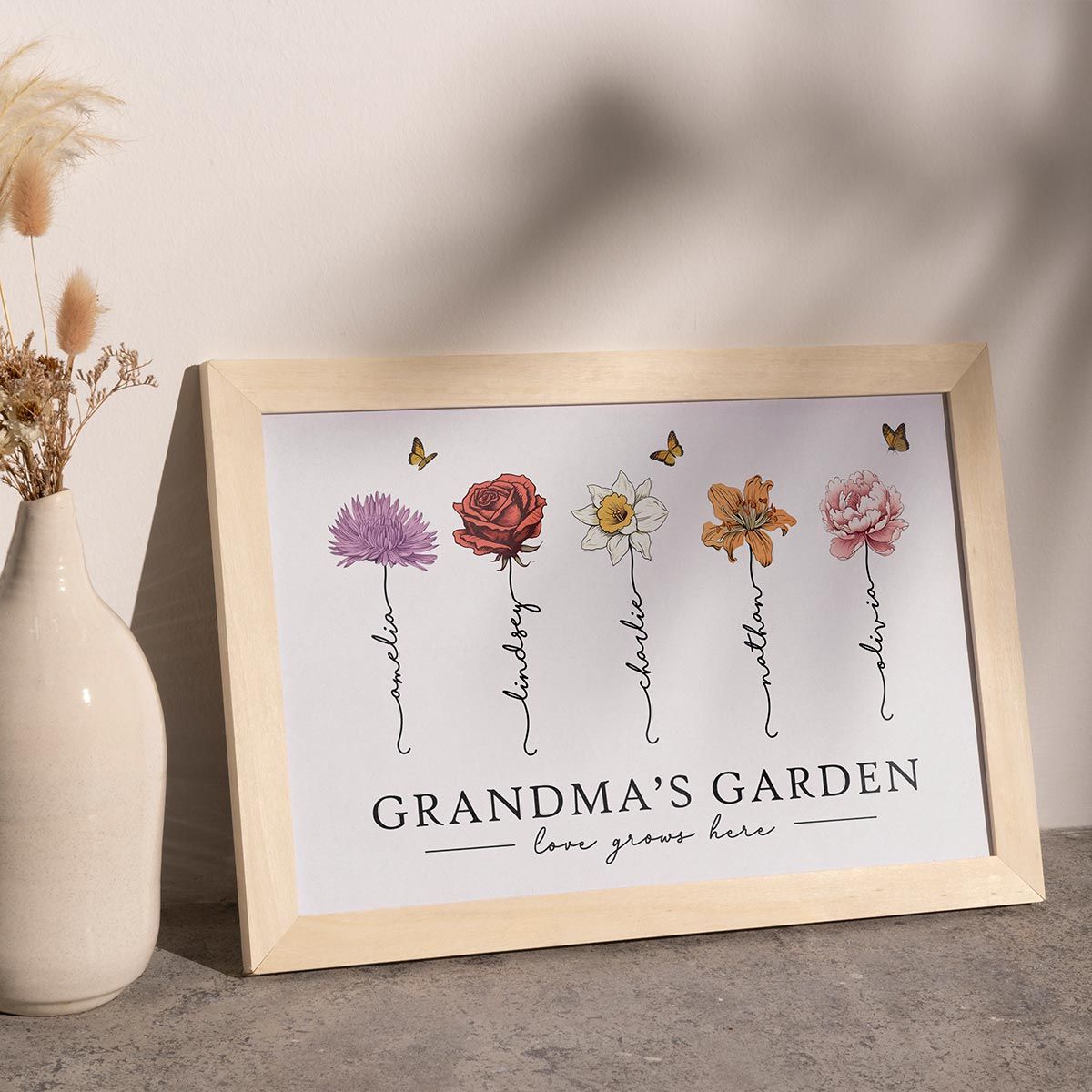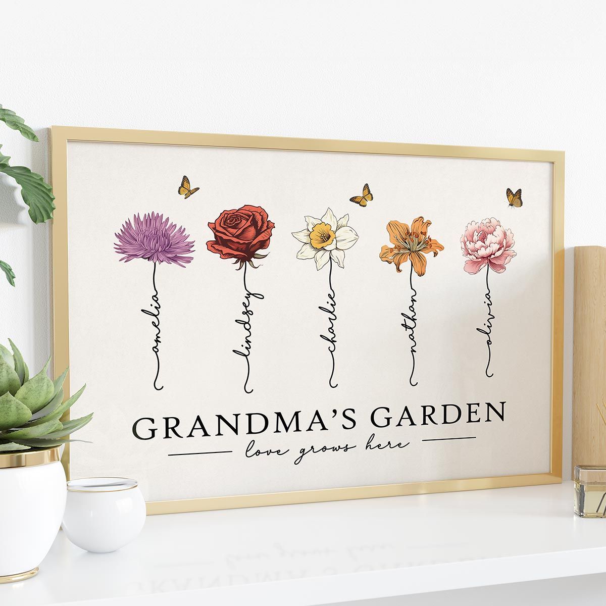 Grandma‘s Garden Love Grows Here Beautiful Birth Month Flower Gift For Grandma Mom Personalized Canvas