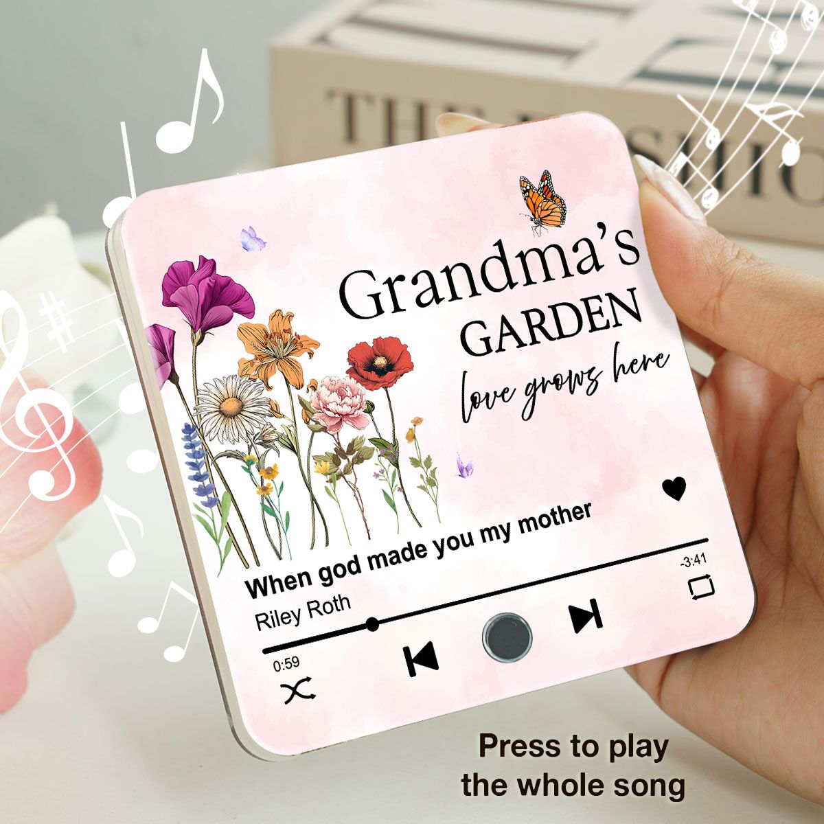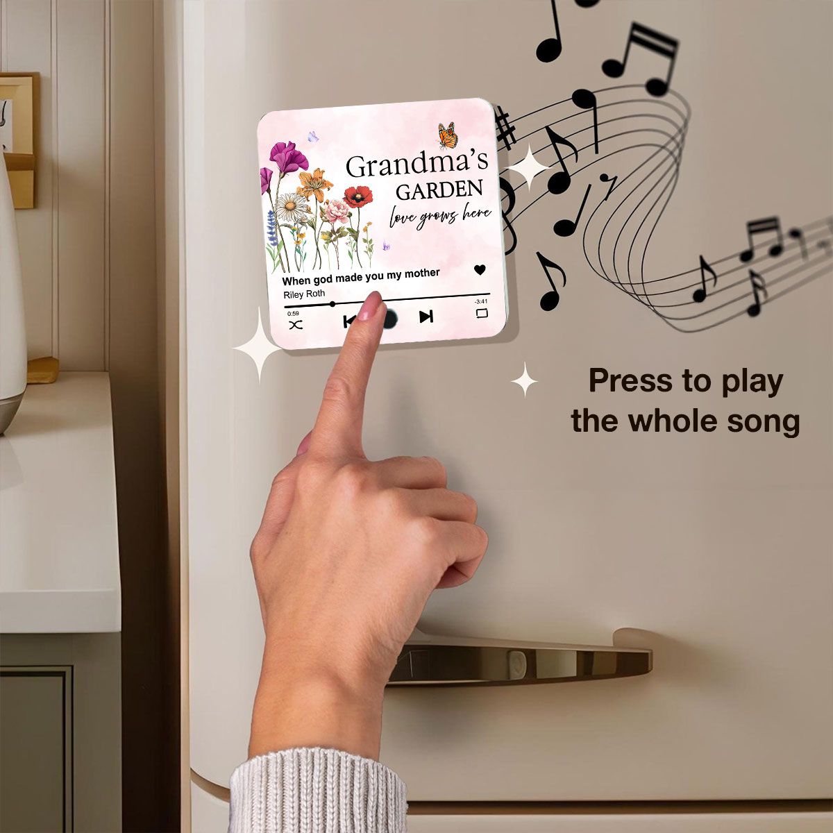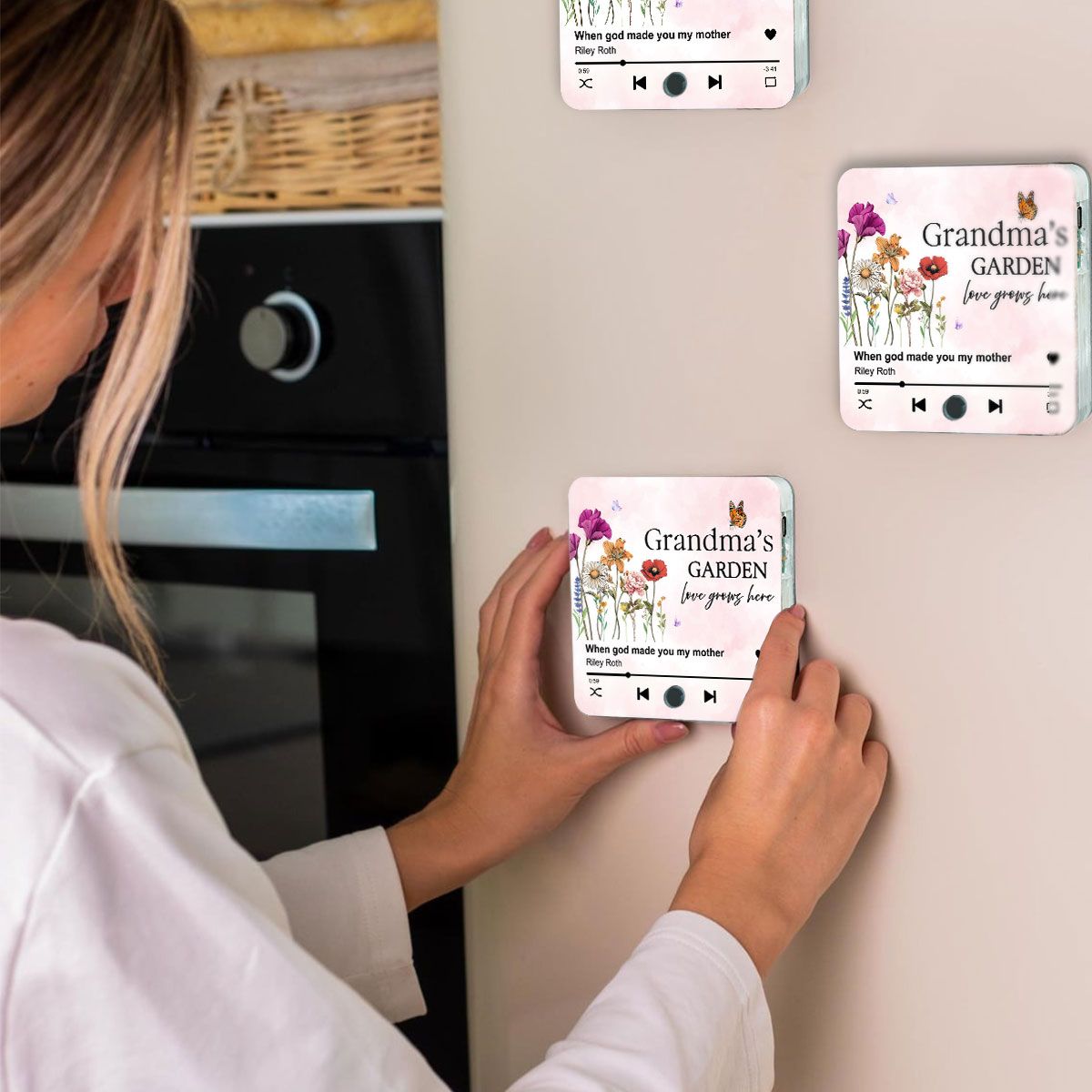 Grandma's Garden, Grandma's Kitchen Birth Month Flower Personalized Music Fridge Magnet, Gift for Grandma, Mom