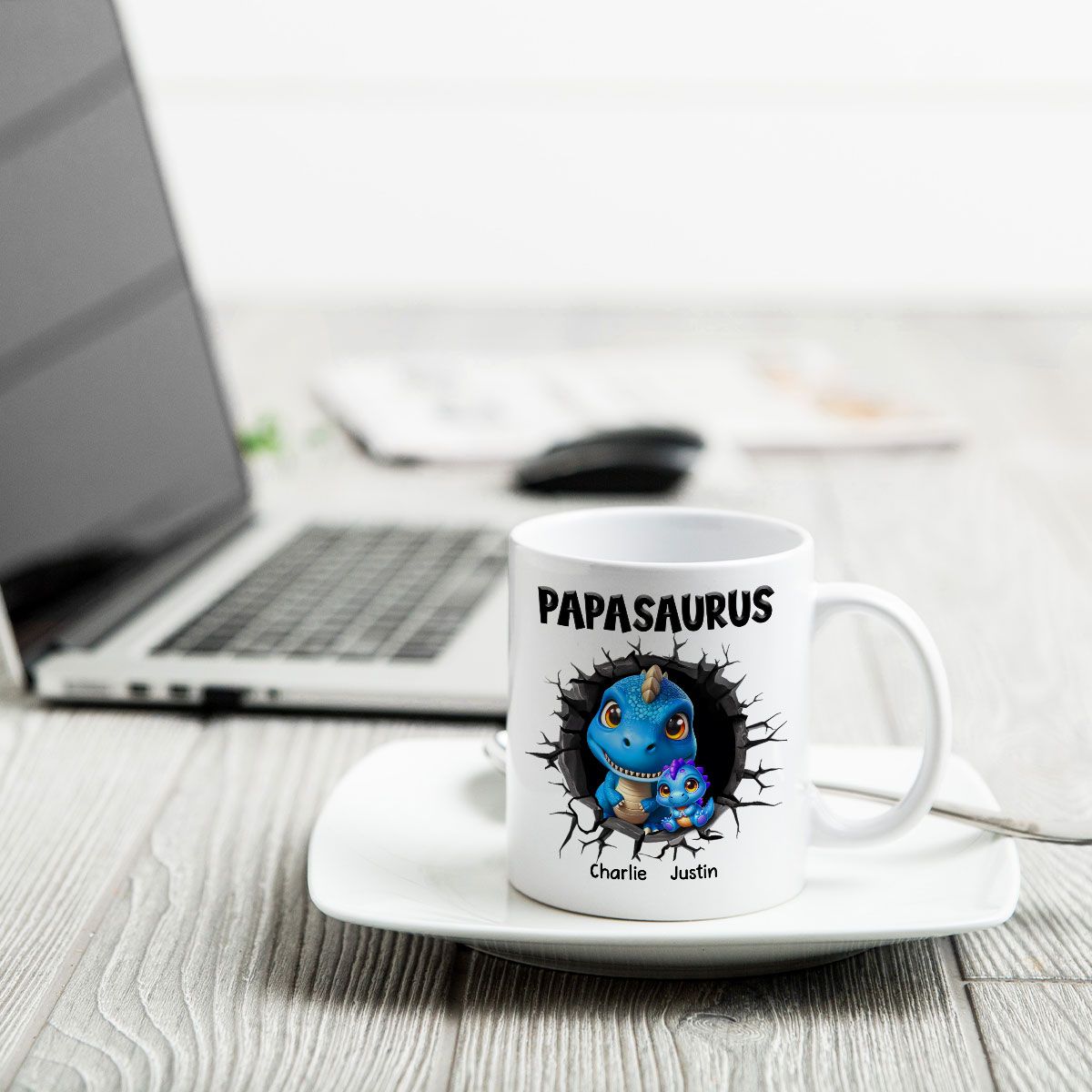 Grandpasaurus Daddysaurus And Kids In A Hold 3D Printed Personalized Mug