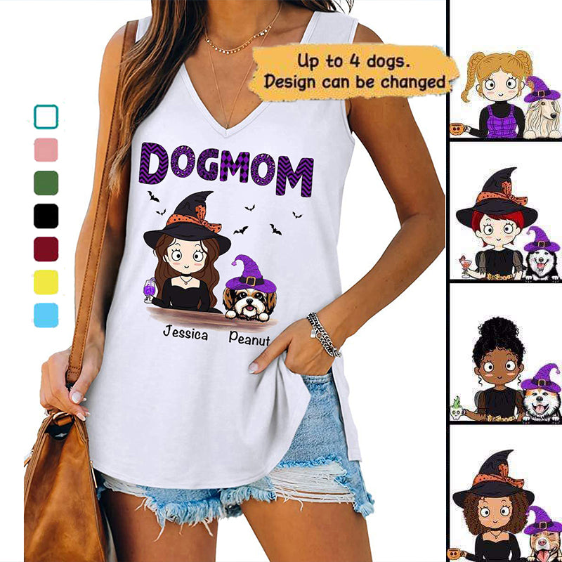 Halloween Dog Mom Chibi Witch Personalized Tank Top