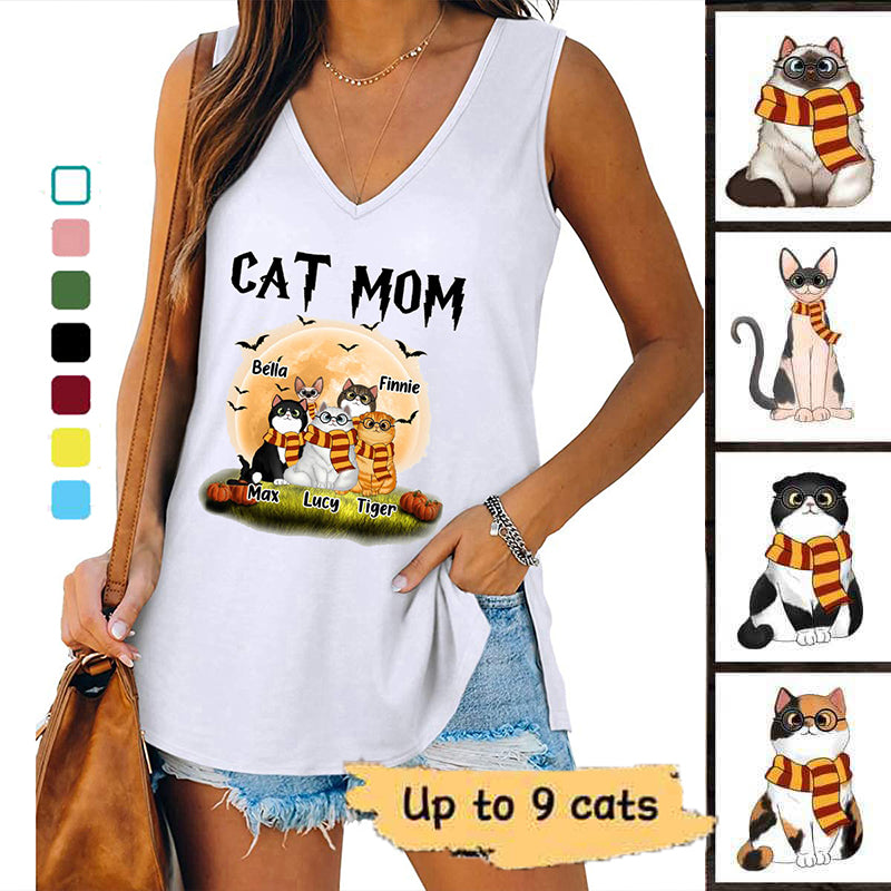 Halloween HP Cat Mom Fluffy Cat Personalized Tank Top