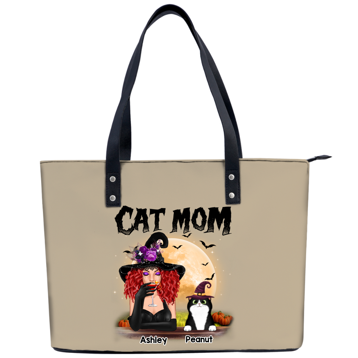 Halloween Witch Cat Mom Personalized Shoulder Bag