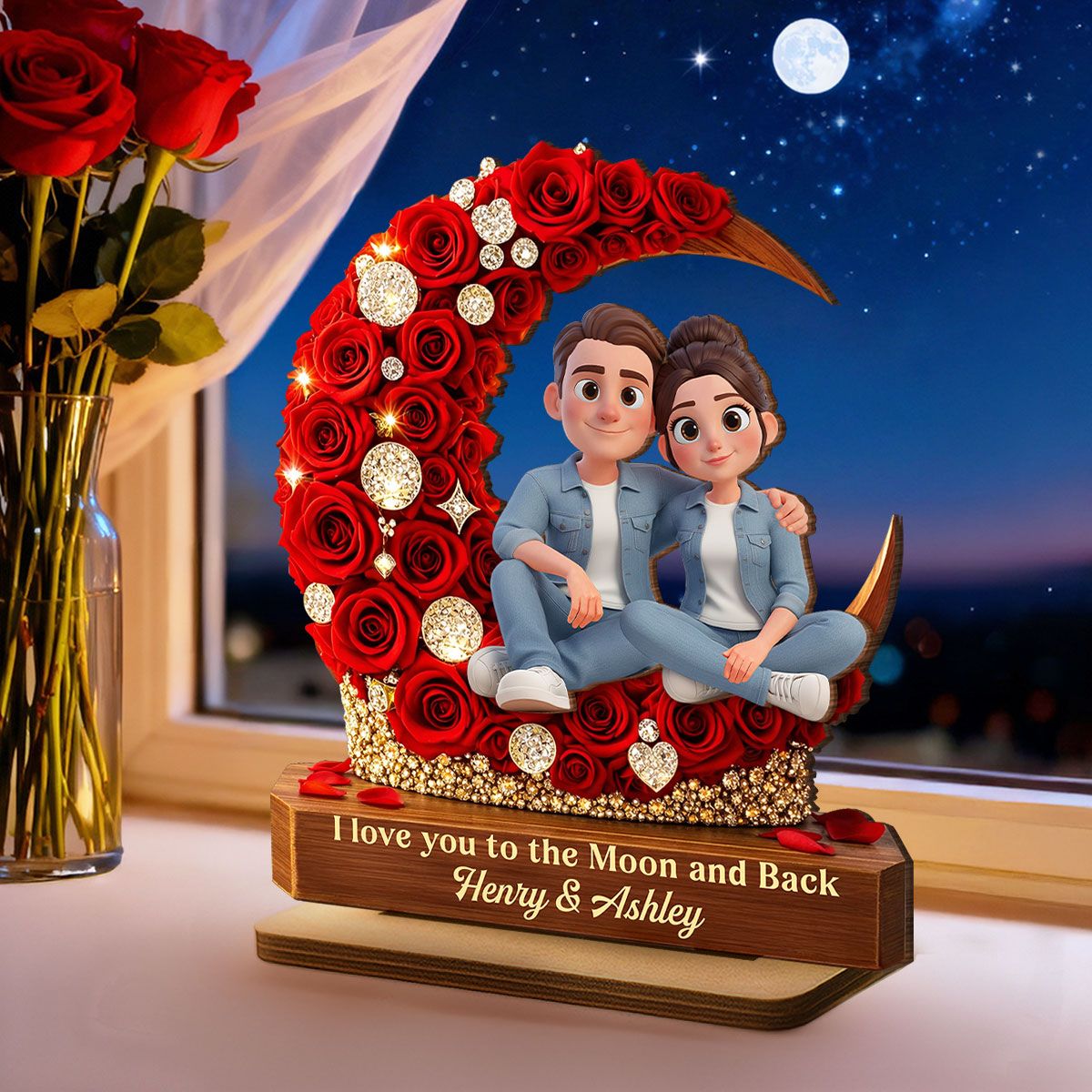 I Love You to the Moon and Back Romantic Love - Personalized 2-Layered Wooden Plaque - Heartfelt Valentine's Day Gift for Her, for Him
