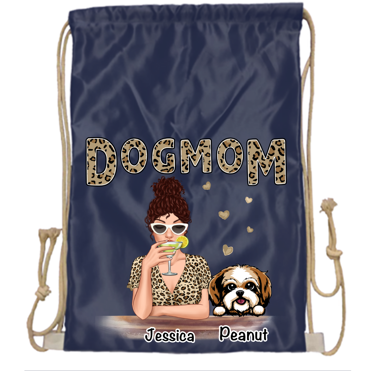 Leopard Dog Mom Personalized Drawstring BackPacks