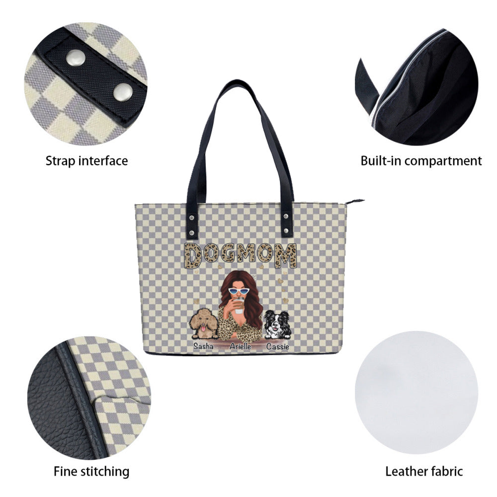 Leopard Shirt Dog Mom Personalized Soft Leather Tote Shoulder Bag, Big Capacity Handbag