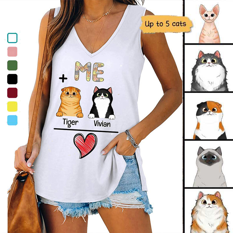 Me And Cats Is Love Personalized Women Tank Top V Neck Casual Flowy Sleeveless