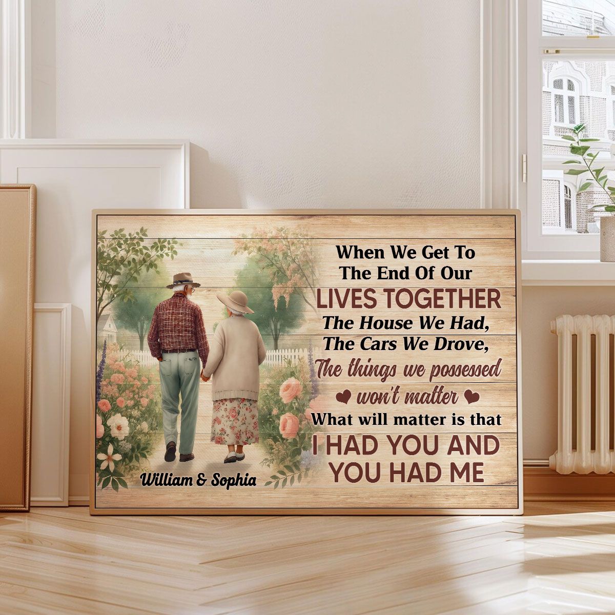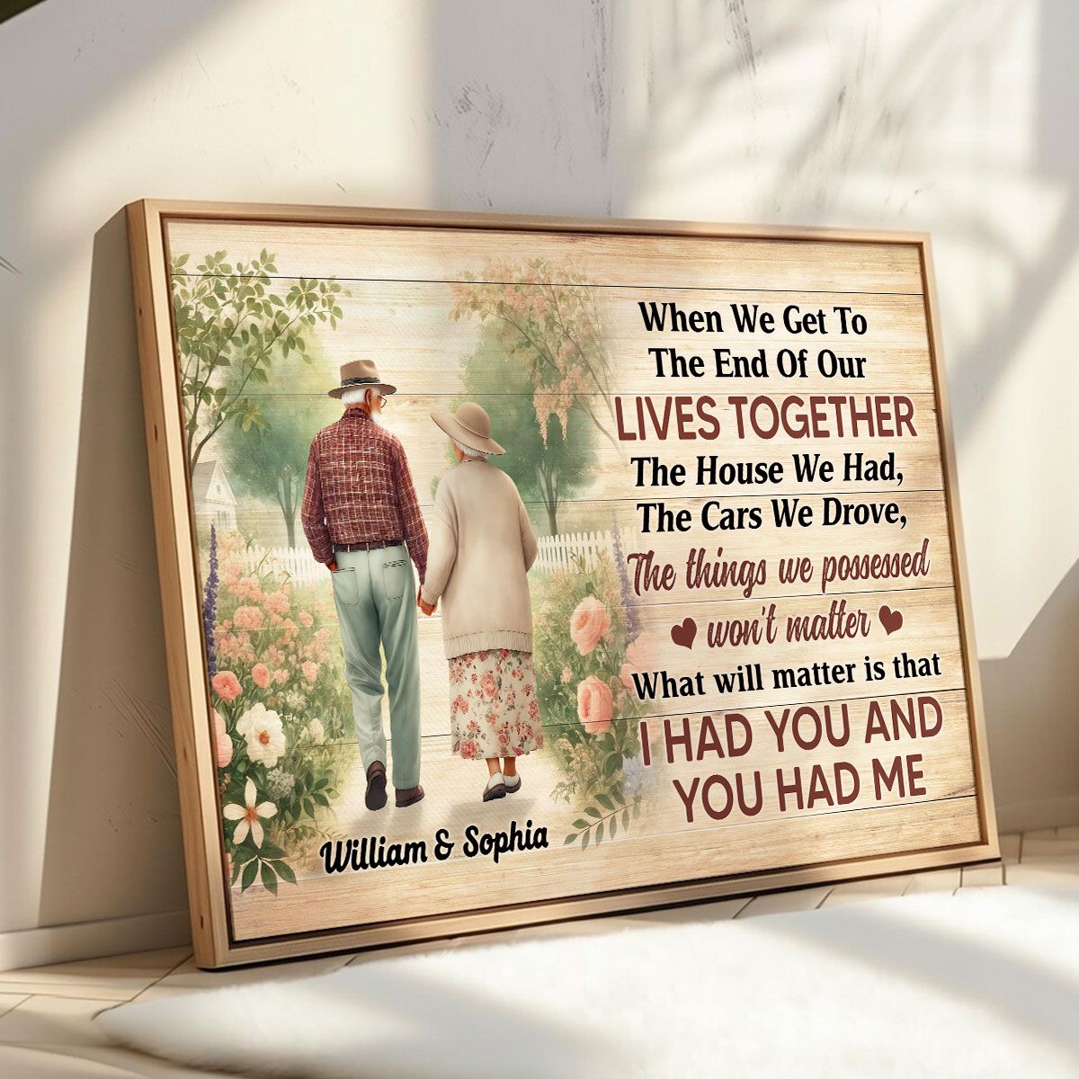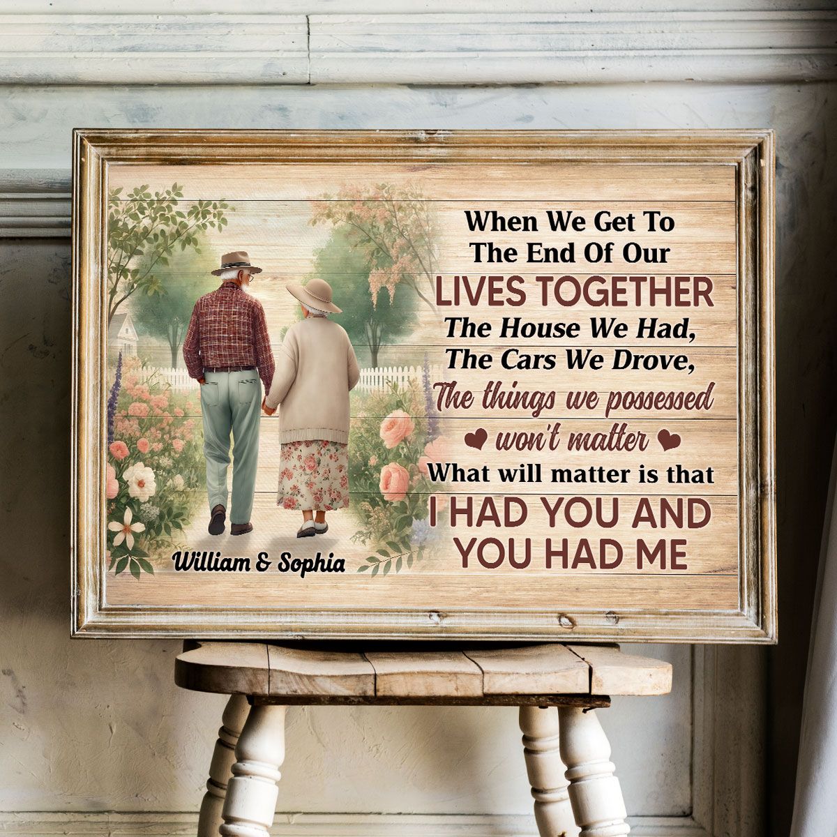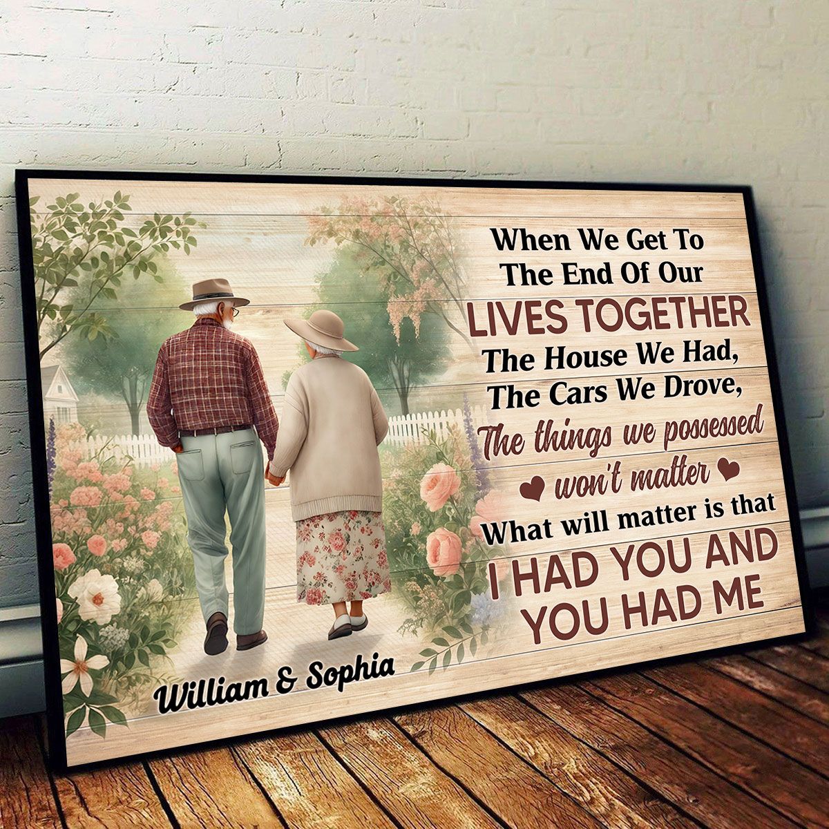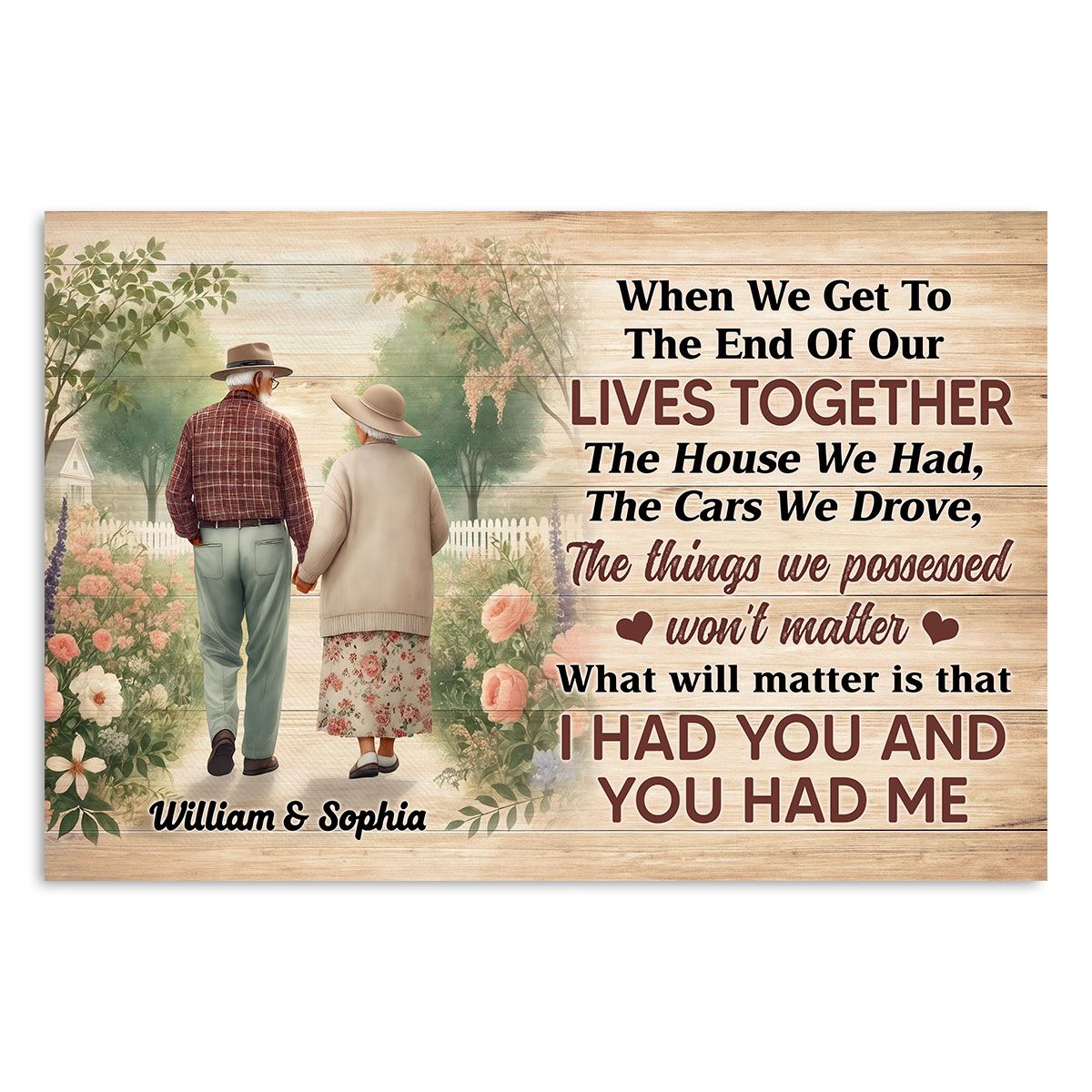 Old Couple Walking In The Flower Garden Personalized Poster, Gift For Him, For Her