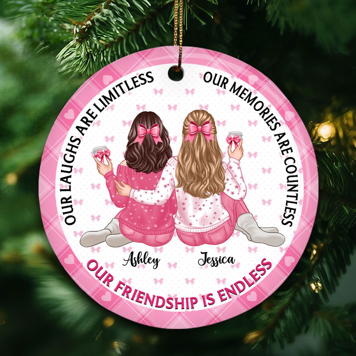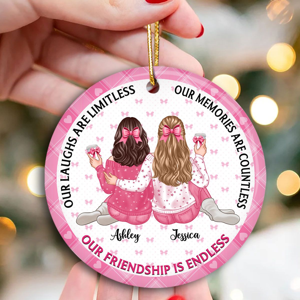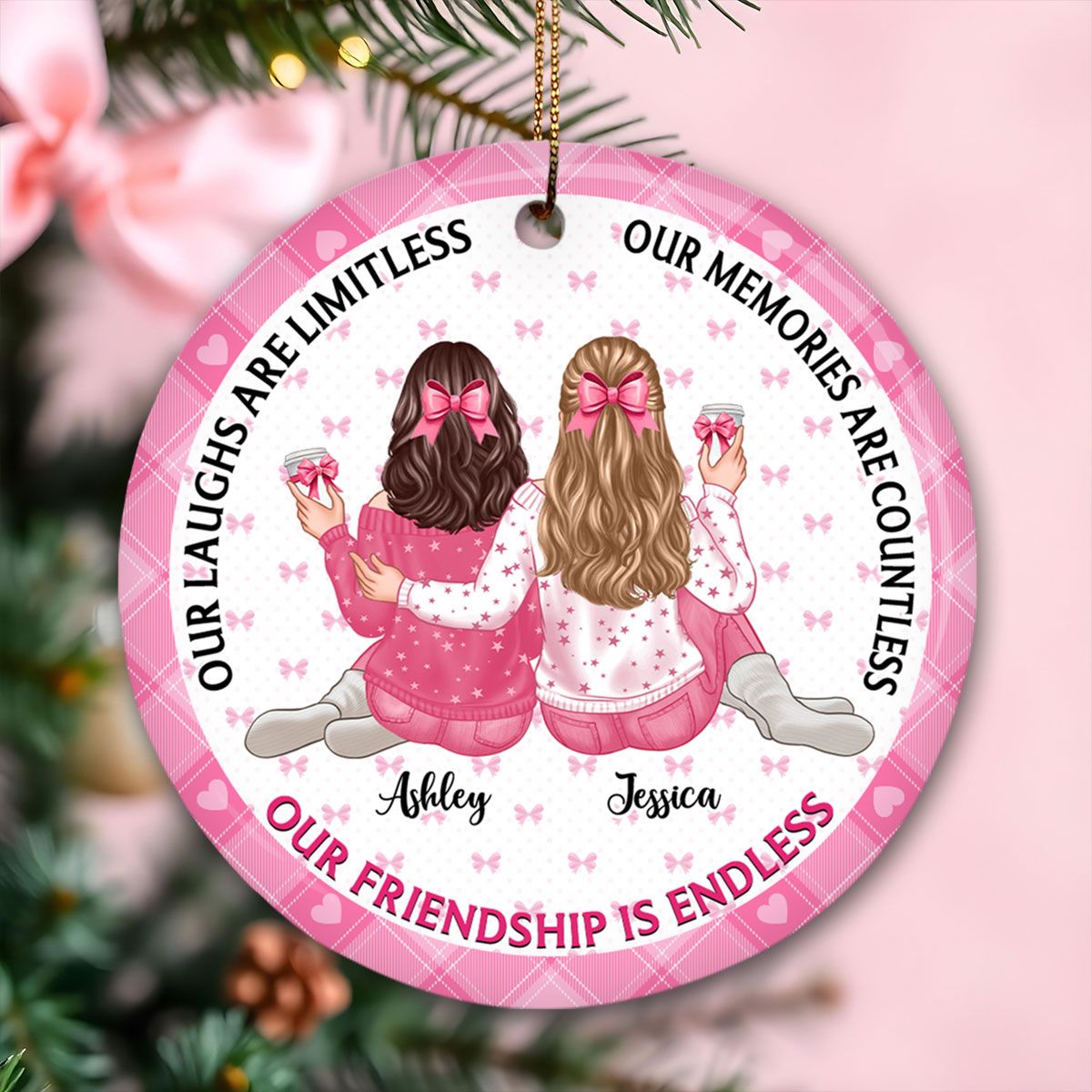 Our Friendship Is Endless Besties Back View Coquette Theme Personalized Ceramic Ornament