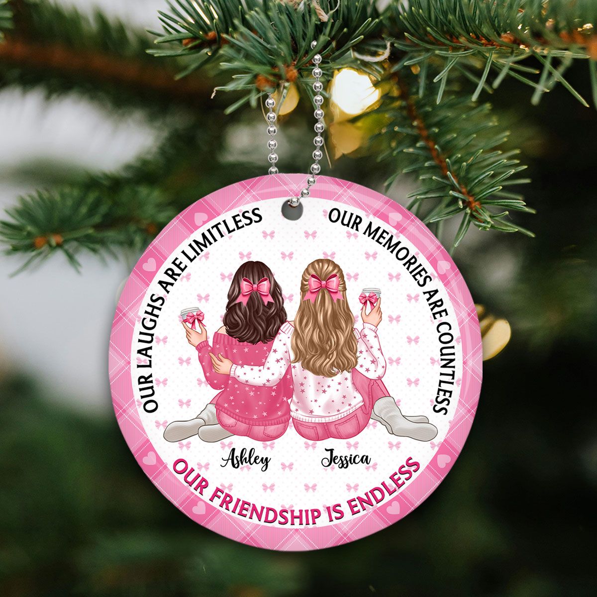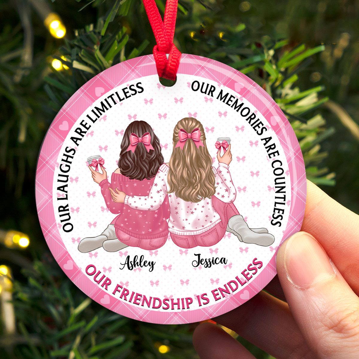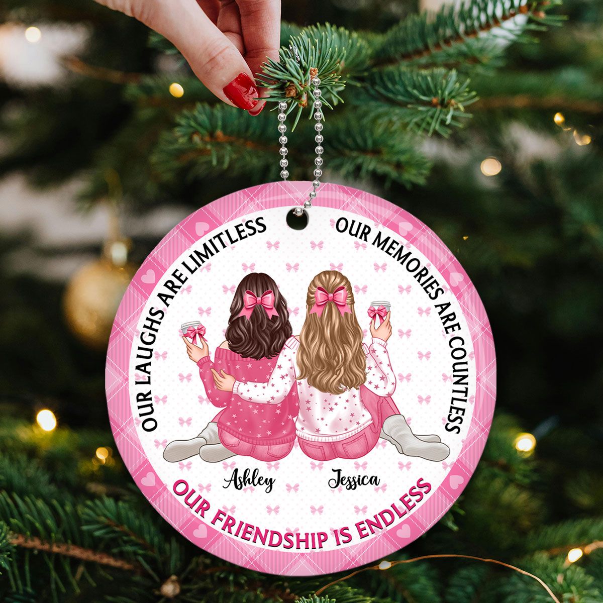 Our Friendship Is Endless Besties Back View Coquette Theme Personalized Ceramic Ornament