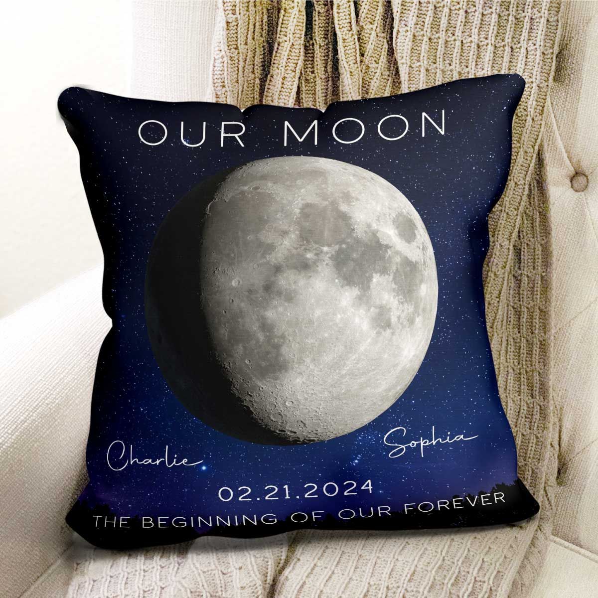 Our Moon Couple Gift Moon Phase Art Anniversary Gift For Him Gift For Her Personalized Pillow
