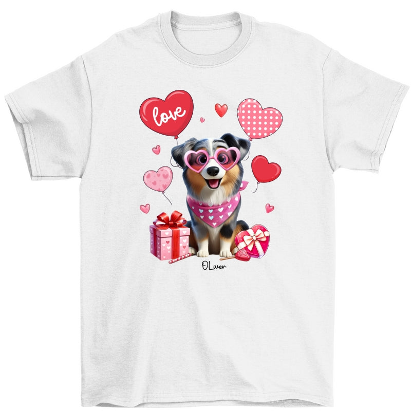 Personalized Valentine Heart Balloon Shirt For Dog Mom, 3D Cute Dogs