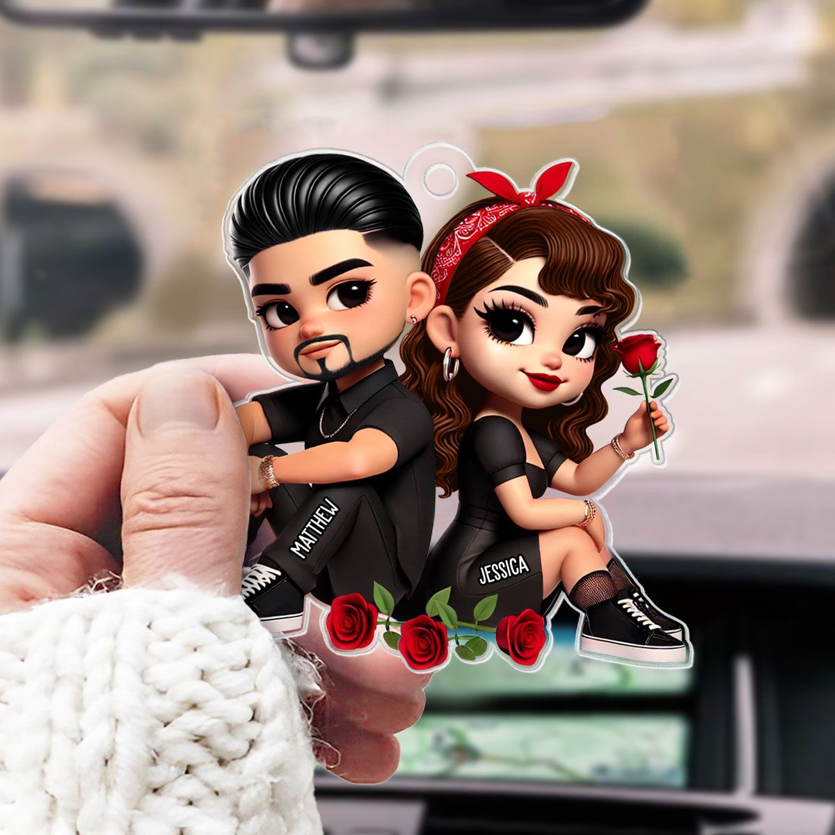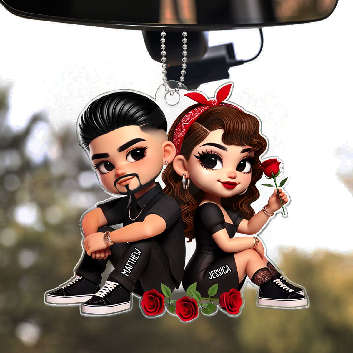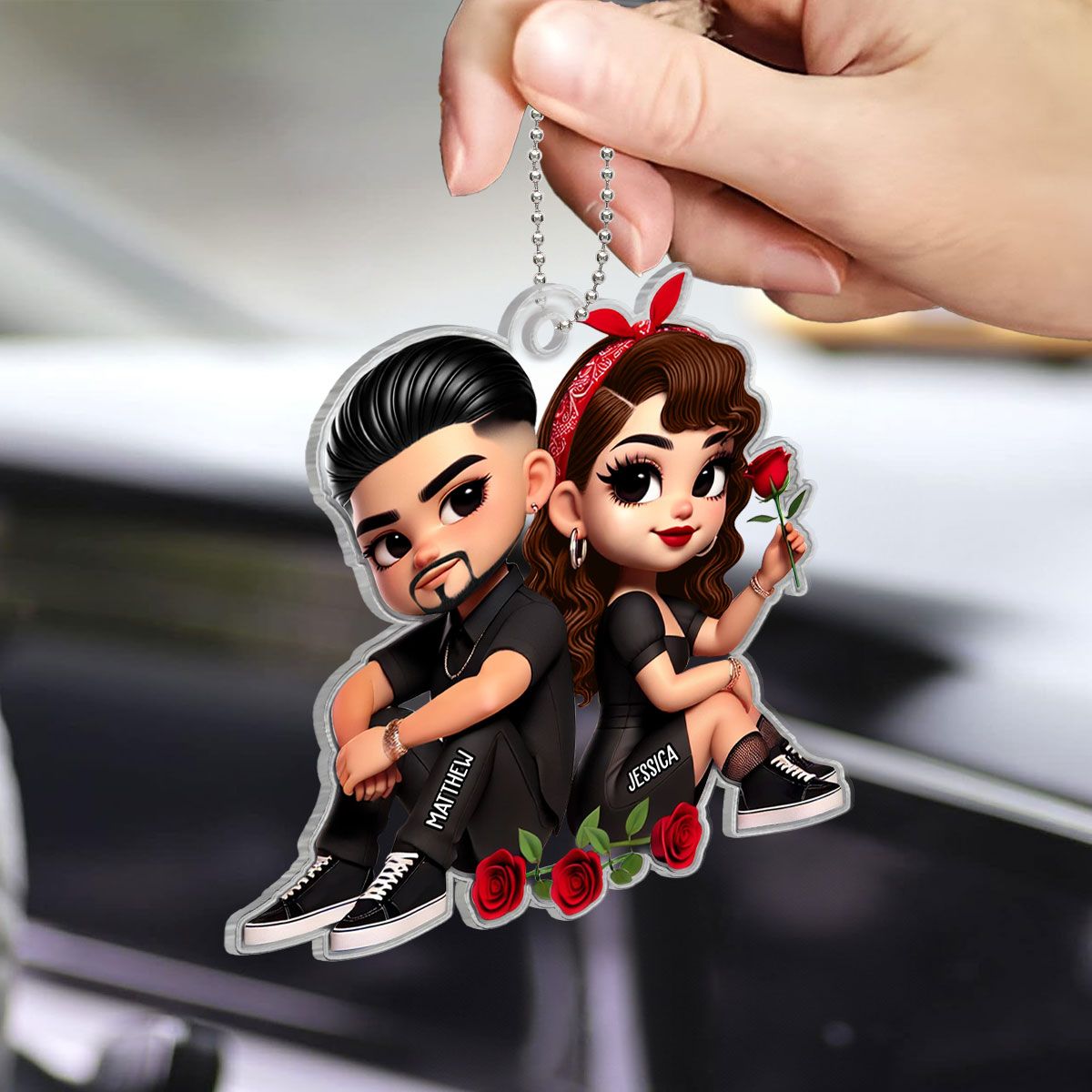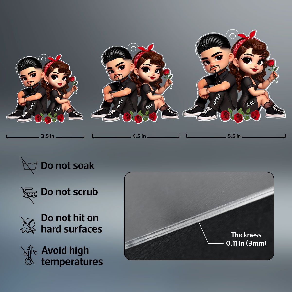 Pretty Couple Roses Heart Personalized Acrylic Car Hanger, Anniversary Gift, Valentine's Day Gift for Couples