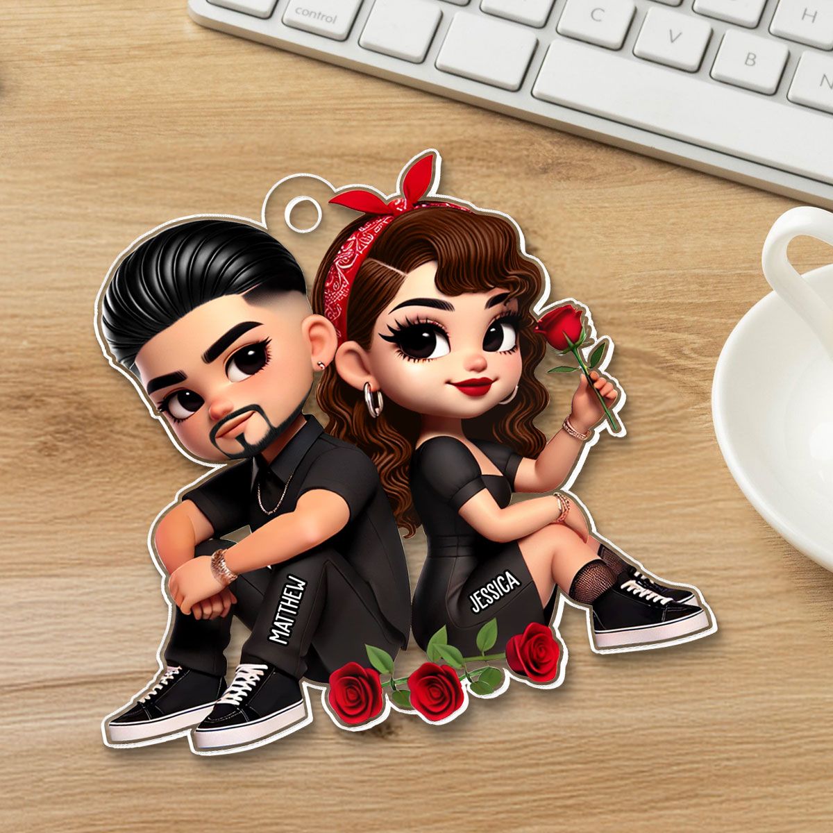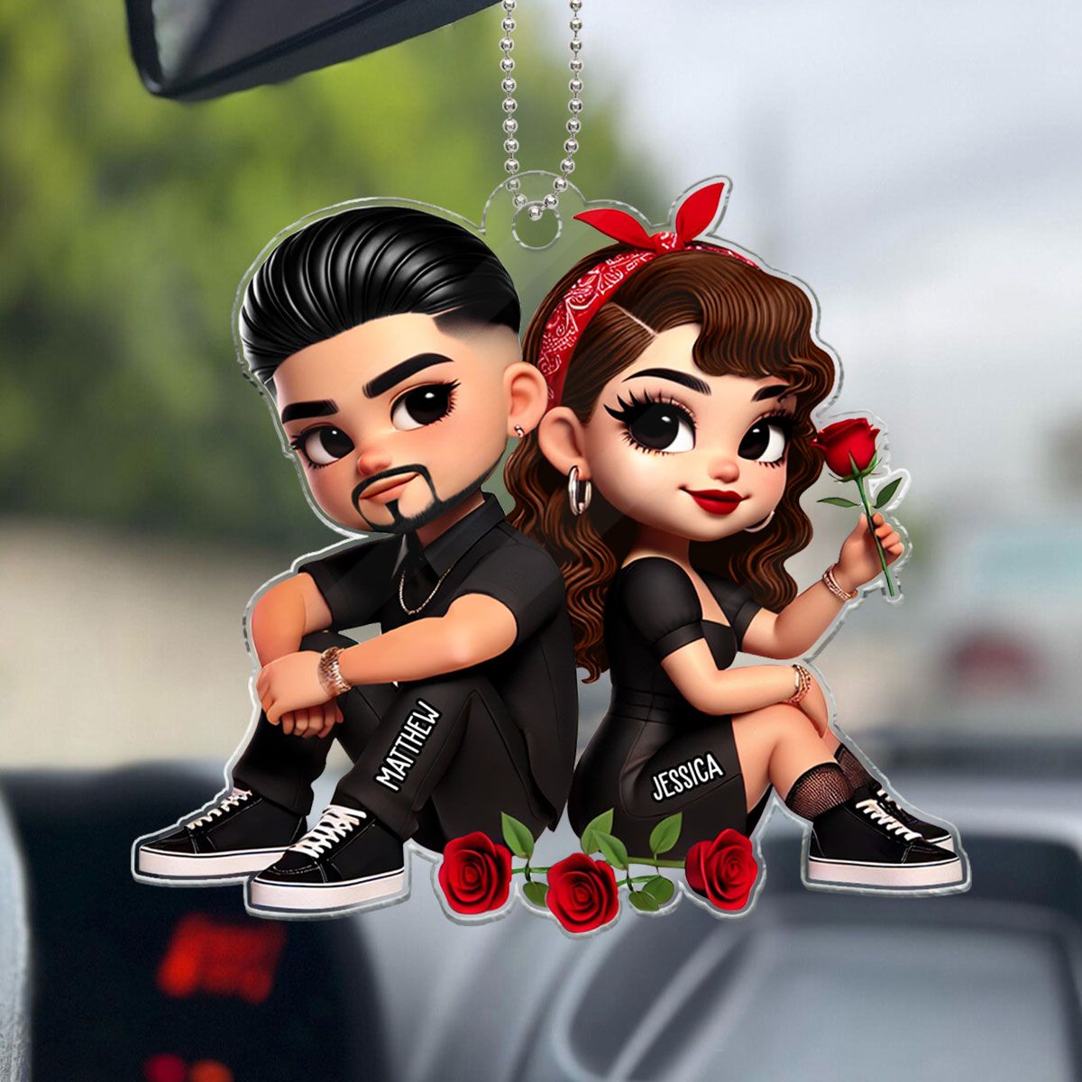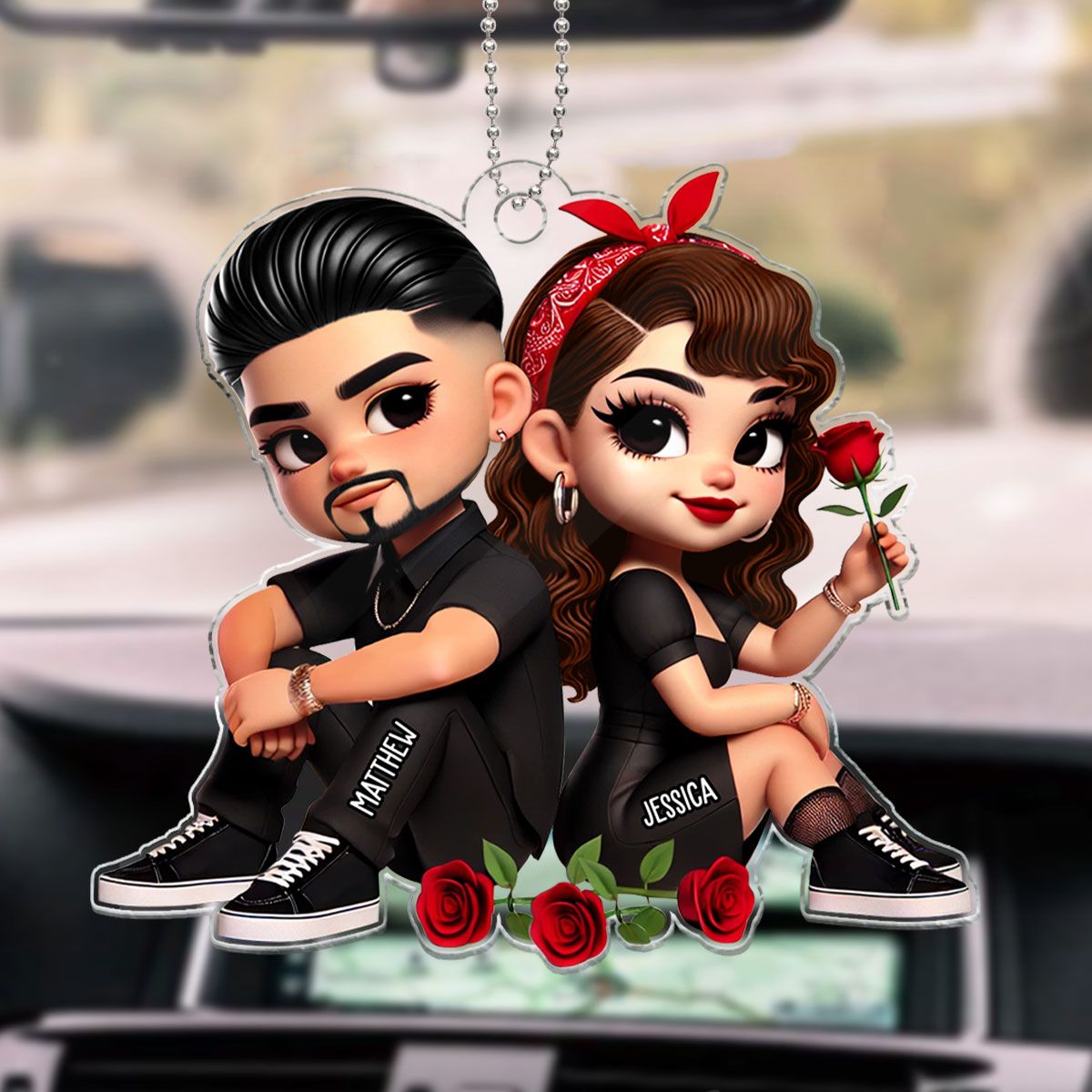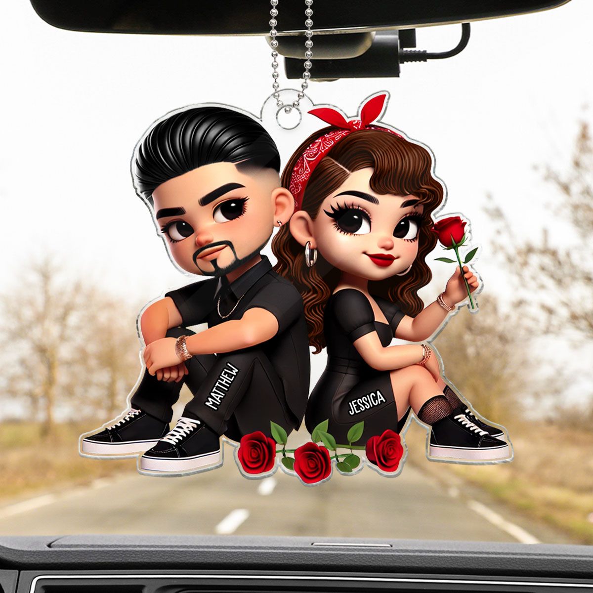 Pretty Couple Roses Heart Personalized Acrylic Car Hanger, Anniversary Gift, Valentine's Day Gift for Couples
