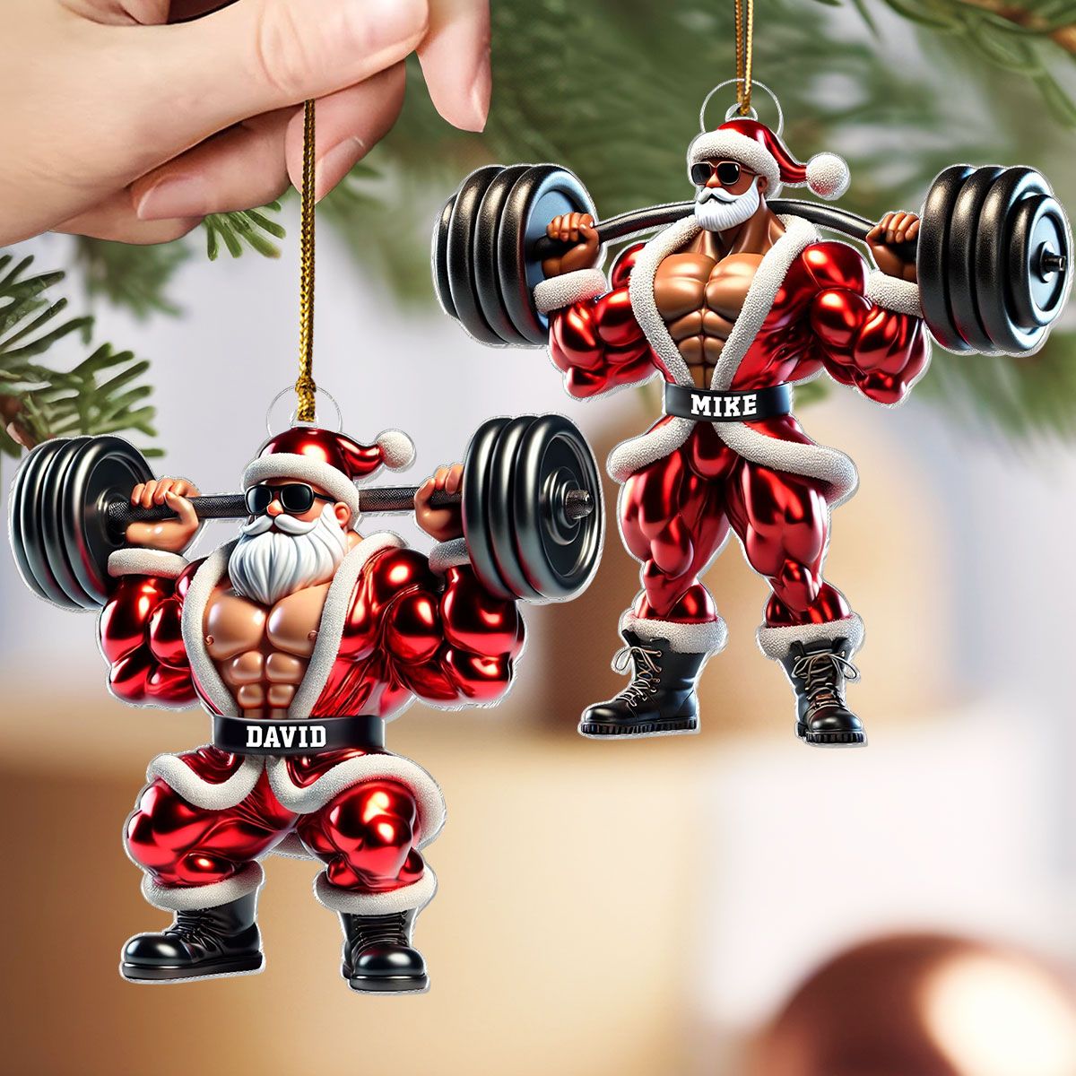 Santa Claus Weightlifting Christmas Personalized Acrylic Ornament, Gym, Bodybuilding, Fitness Christmas Gift