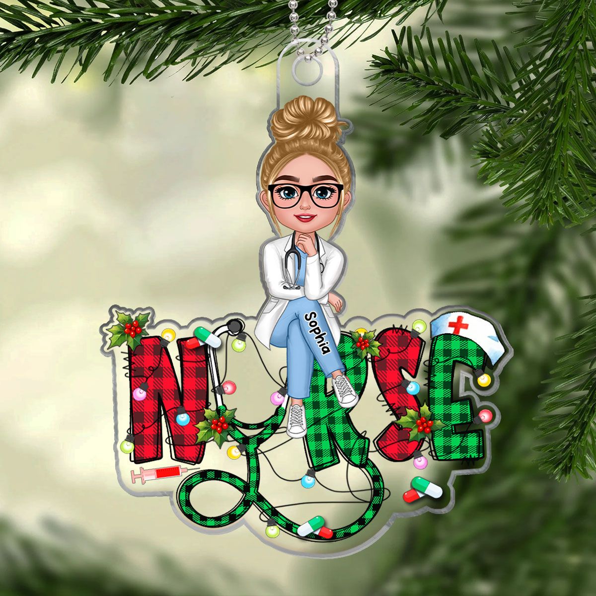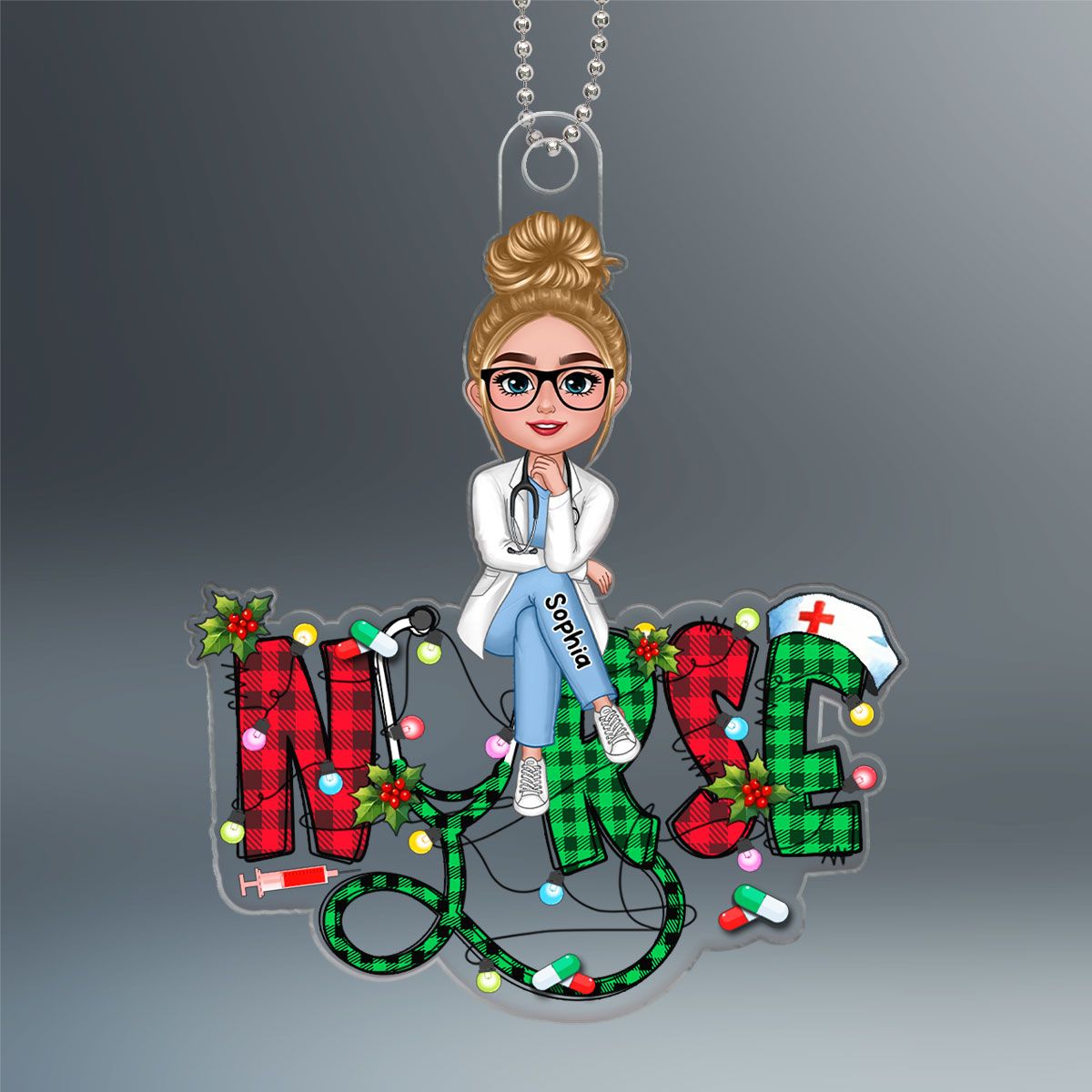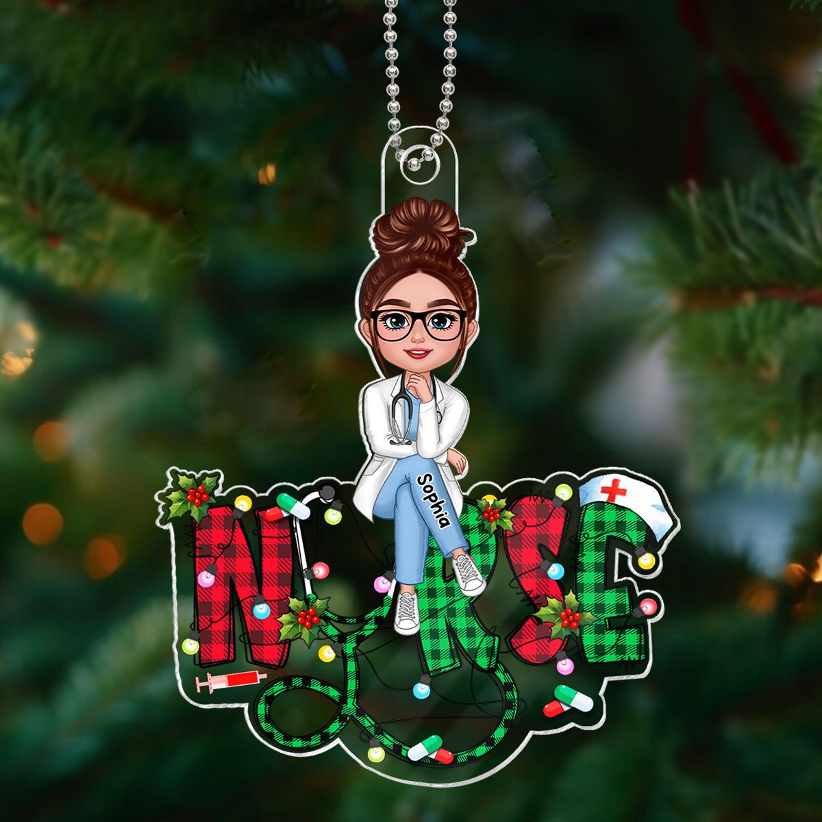 Sitting Nurse Christmas Pattern Personalized Acrylic Ornament, Christmas Gift For Nurses
