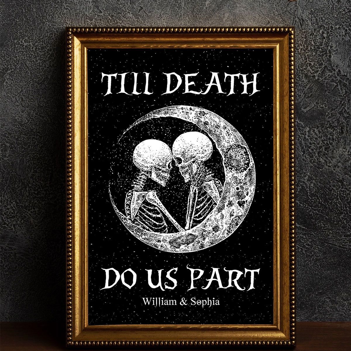 Skeleton Skull Couple I Love You To The Moon And Back Personalized Vertical Poster, Gothic Home Decoration