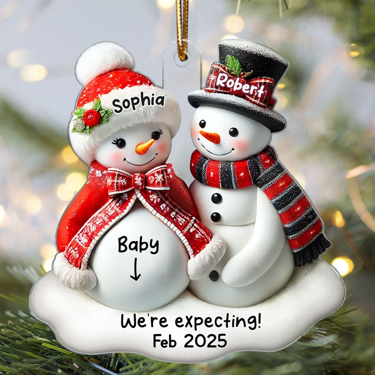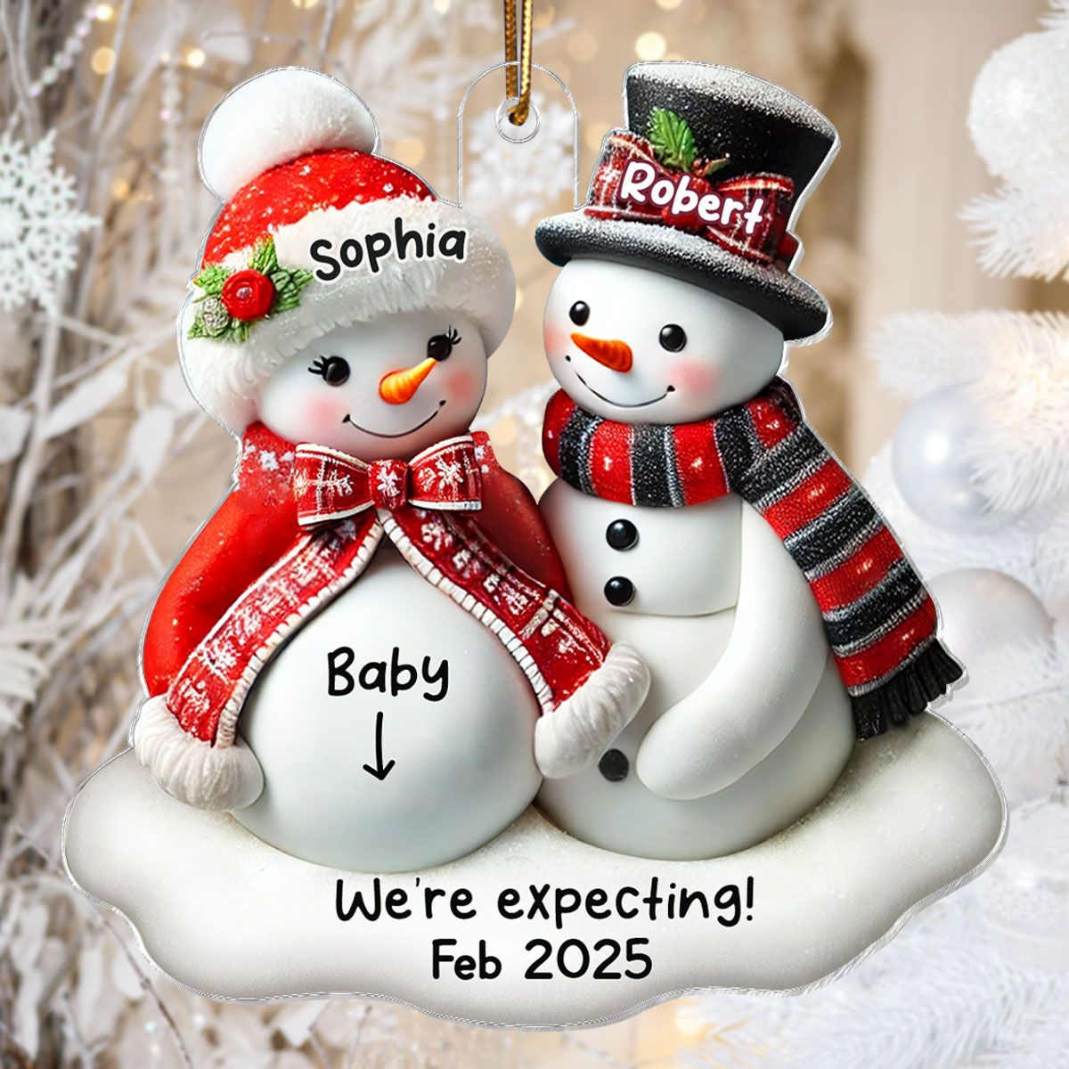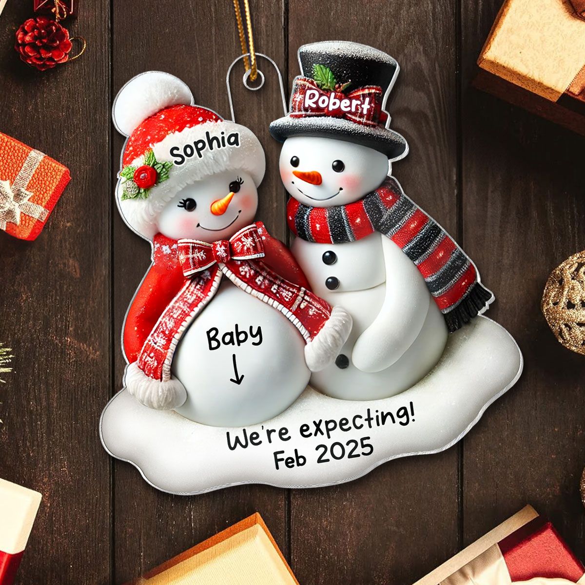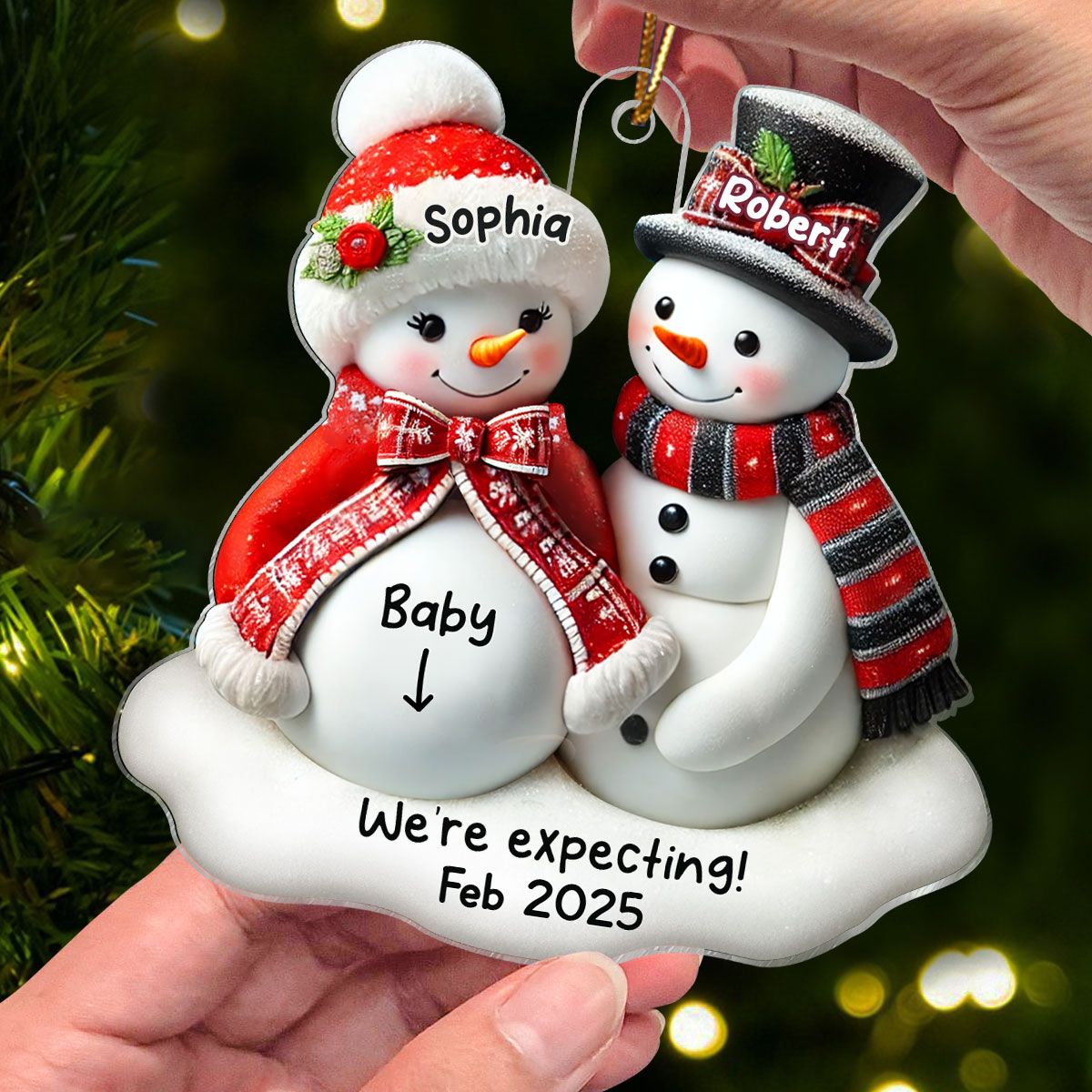 Snowman Couple Expecting Parents Pregnancy Announcement Keepsake Personalized Acrylic Ornament