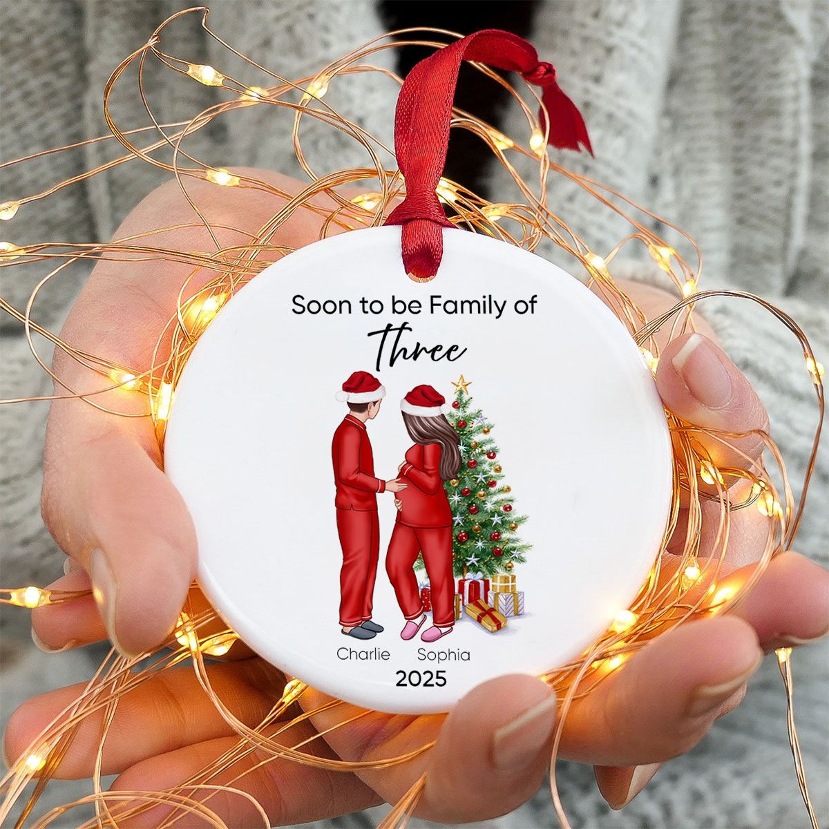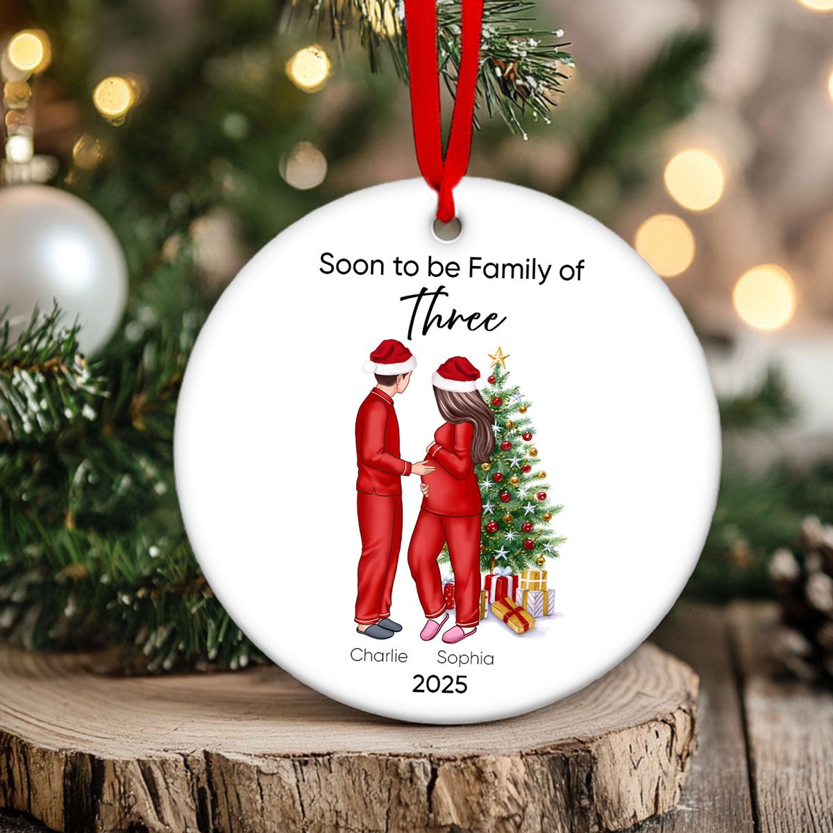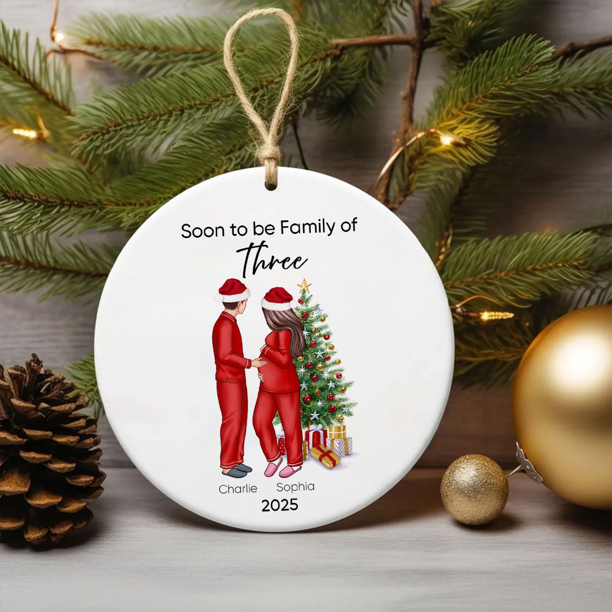 Soon to be Family of 3 Christmas Ornament, Pregnancy Custom Family Ornament, Expecting New Baby Ornament, Mom to be Gift