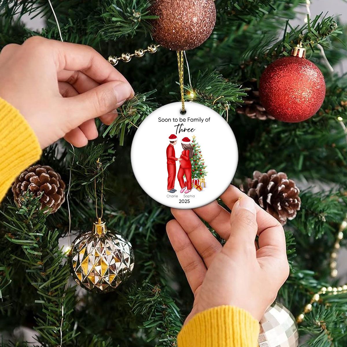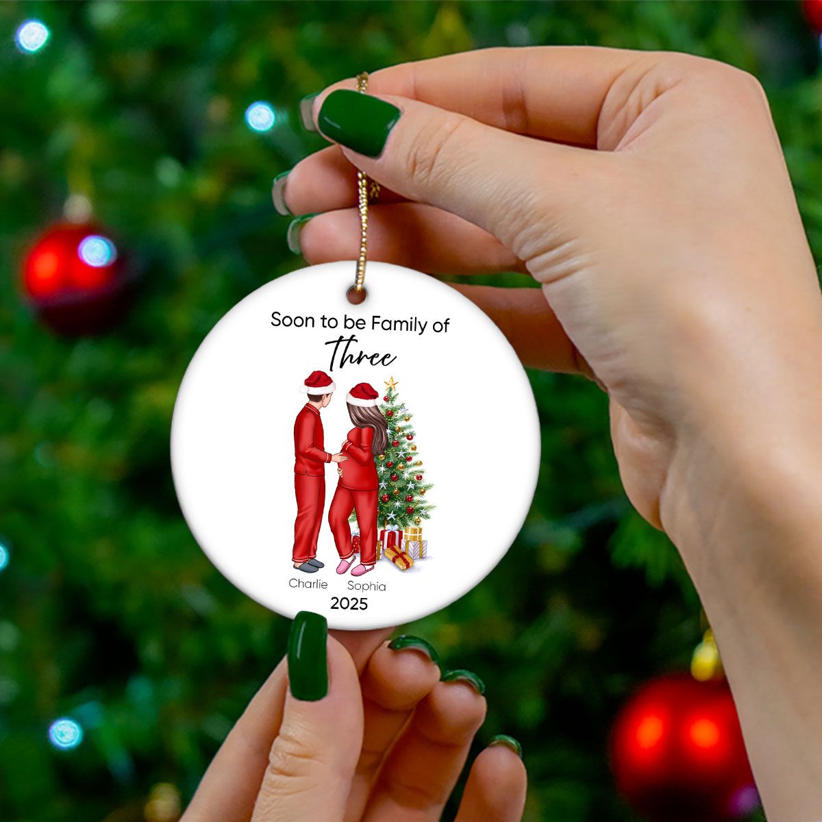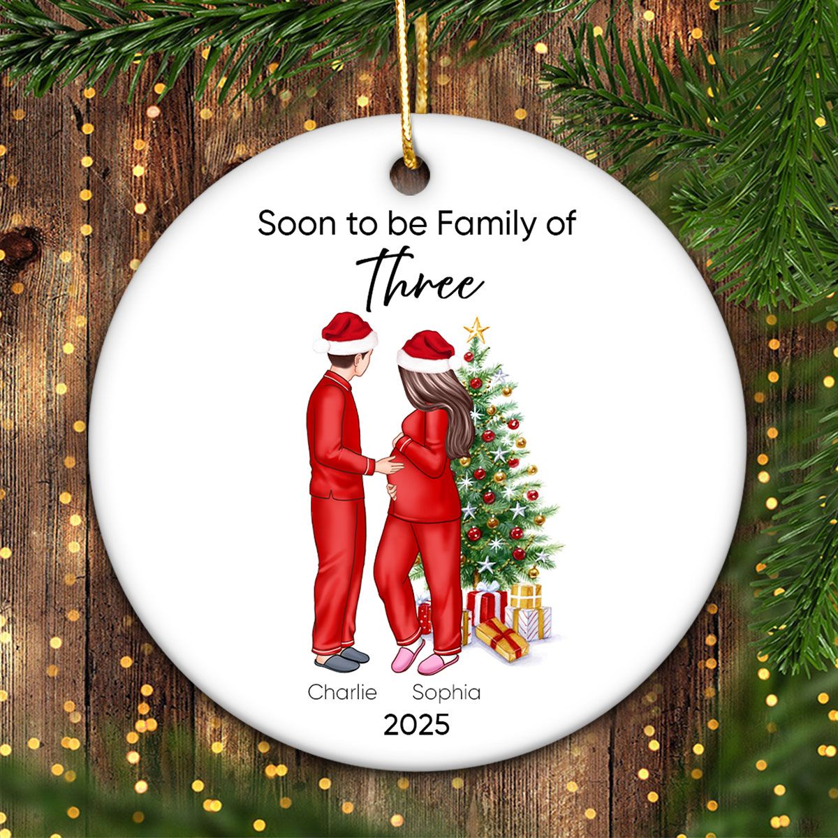 Soon to be Family of 3 Christmas Ornament, Pregnancy Custom Family Ornament, Expecting New Baby Ornament, Mom to be Gift