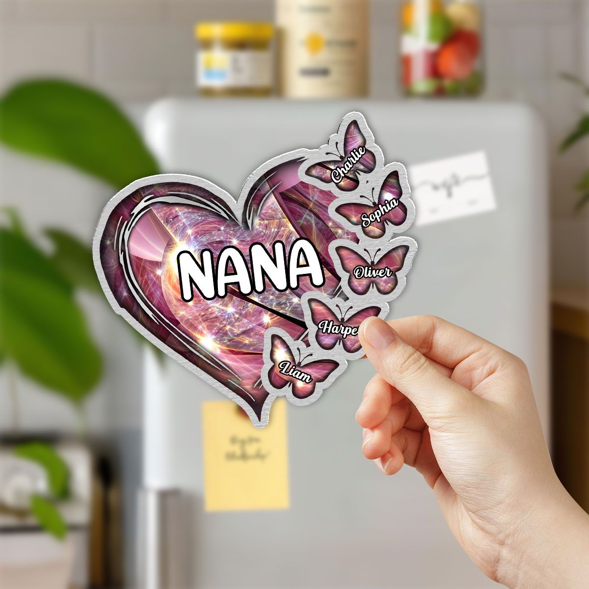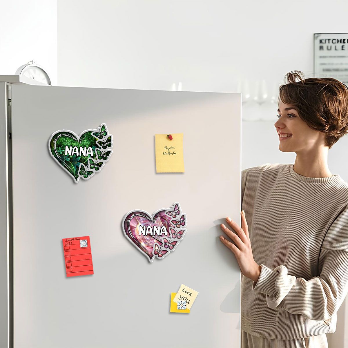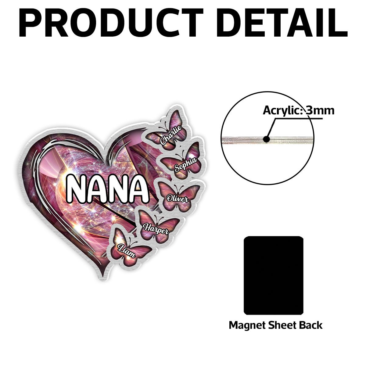 Sparkling Grandma Mom Heart Butterfly Kids Personalized Acrylic Magnet