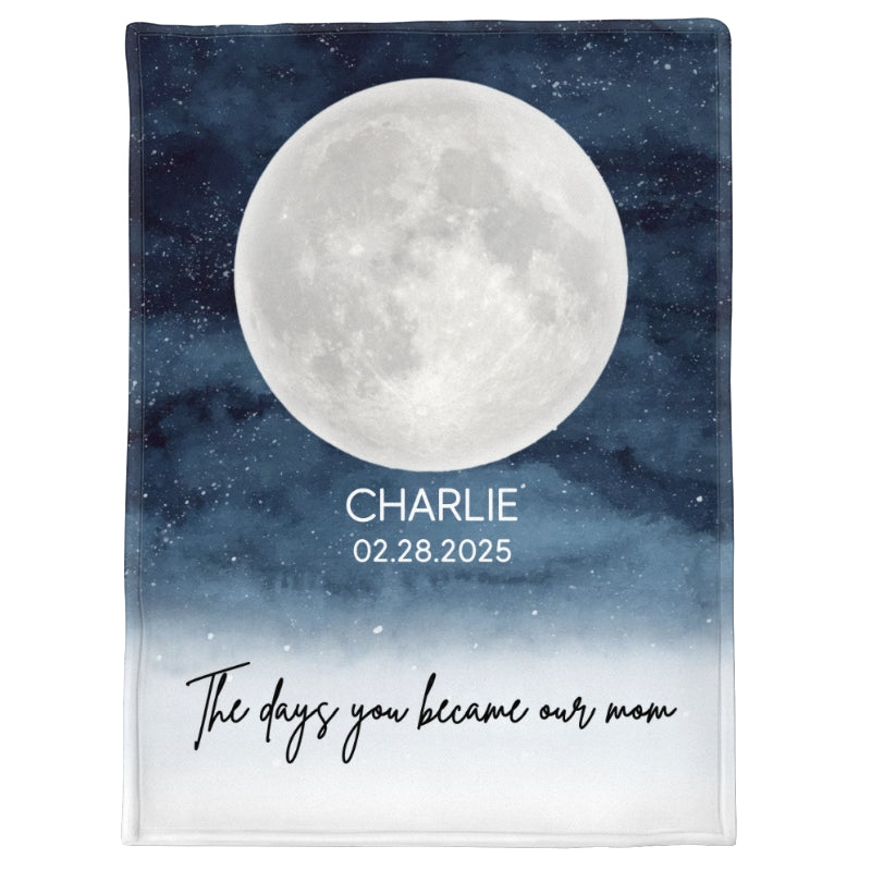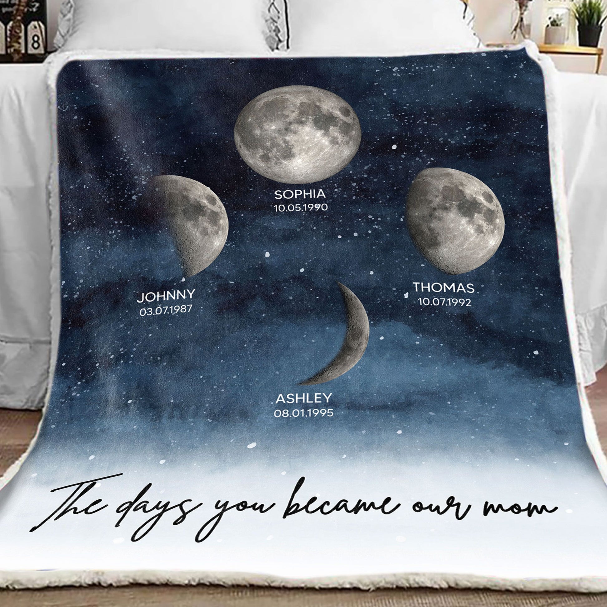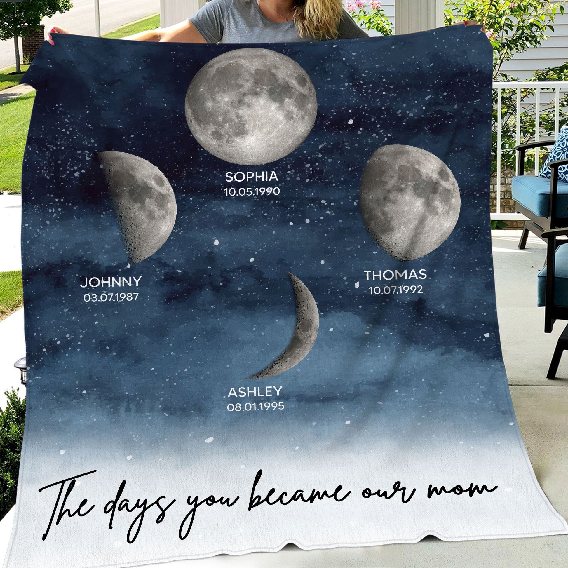 Starry Night Custom Birthday Moon Phase The Day You Became Mom Personalized Blanket, Mother's Day Gift