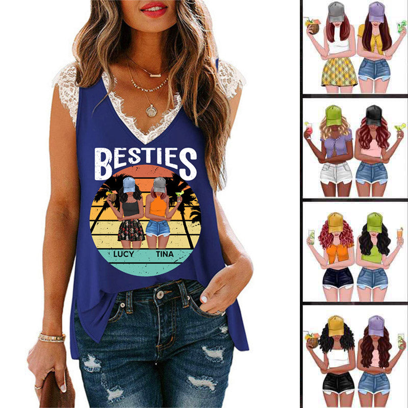 Summer Front View Besties Retro Personalized Women Tank Top V Neck Lace