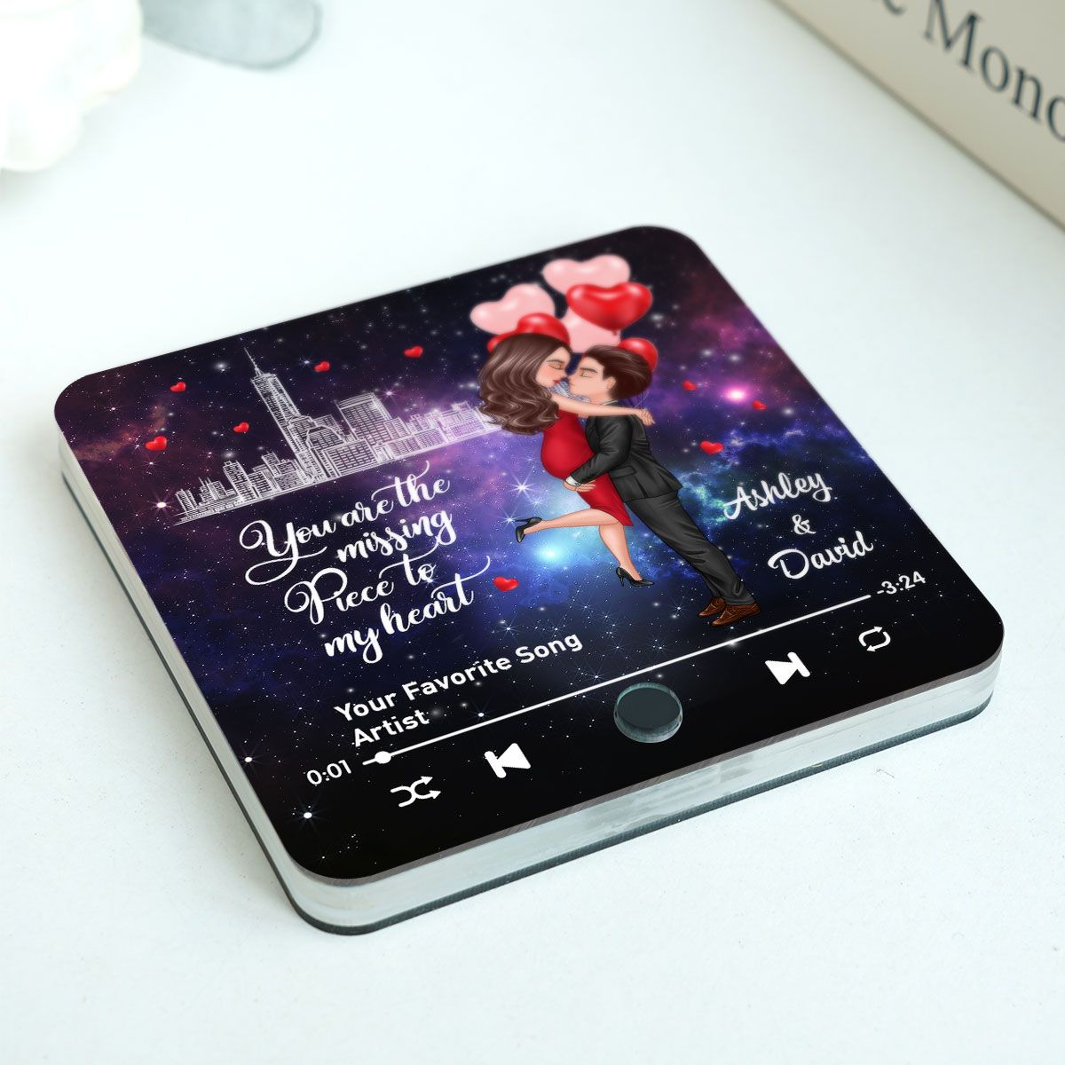 The Missing Piece To My Heart Couple Kissing Favorite Song Personalized Music Fridge Magnet, Gift For Couple