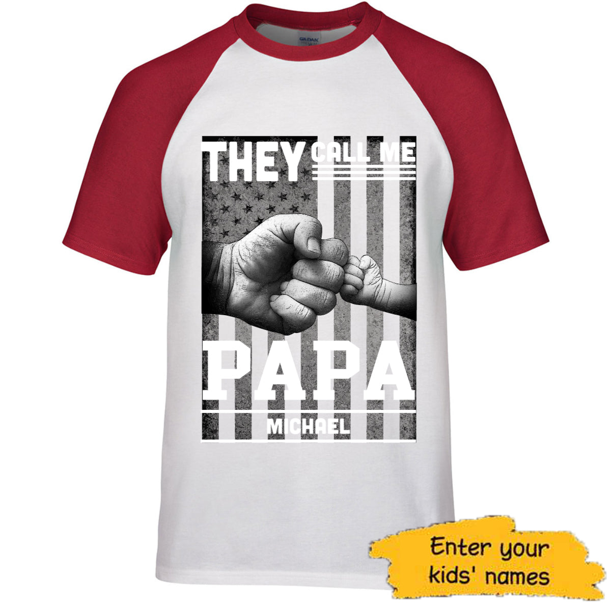 They Call Me Papa Nation Flag Personalized Round Neck Baseball Tee