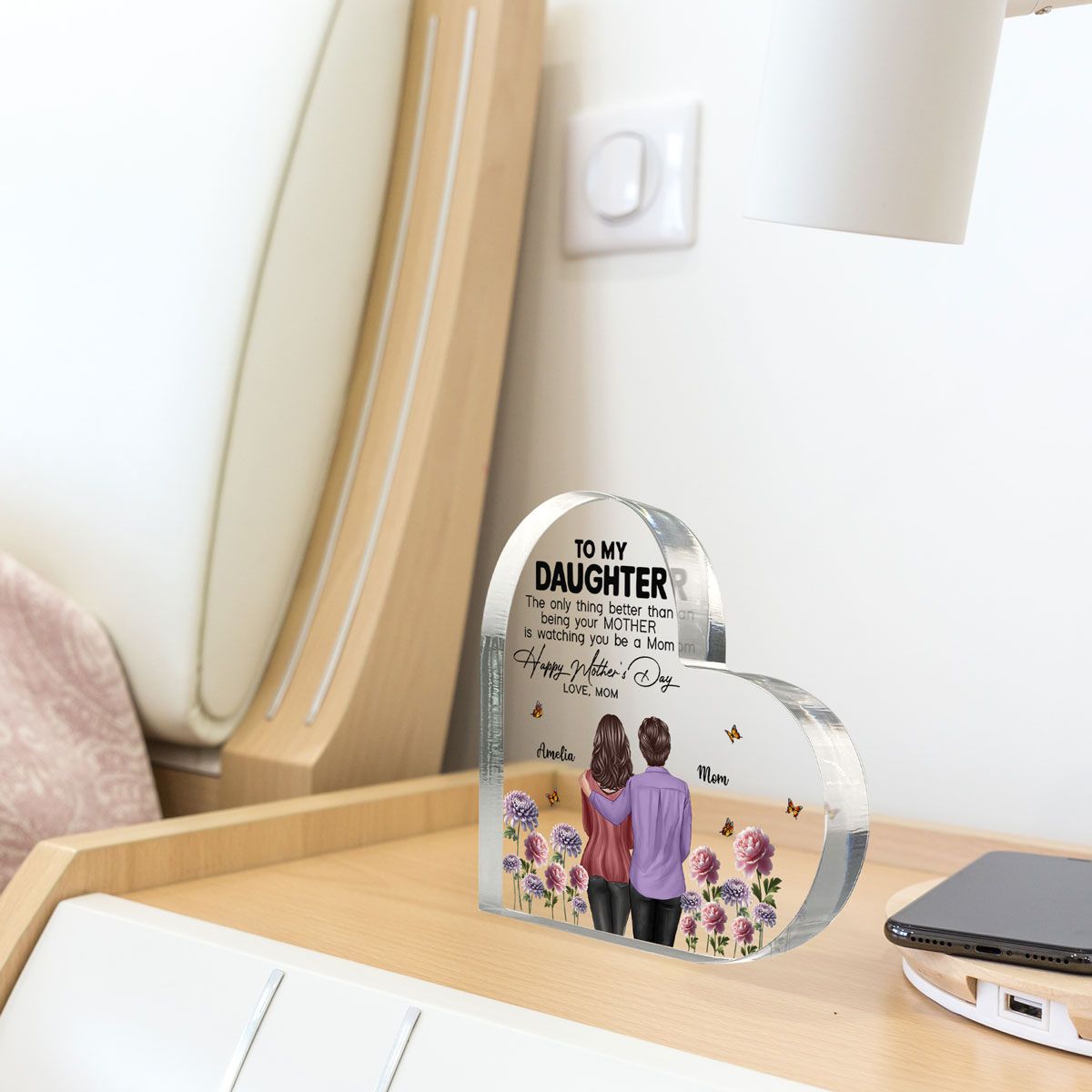 To My Daughter From Mom Happy Mother's Day Birth Flower Personalized Heart Acrylic Block Plaque