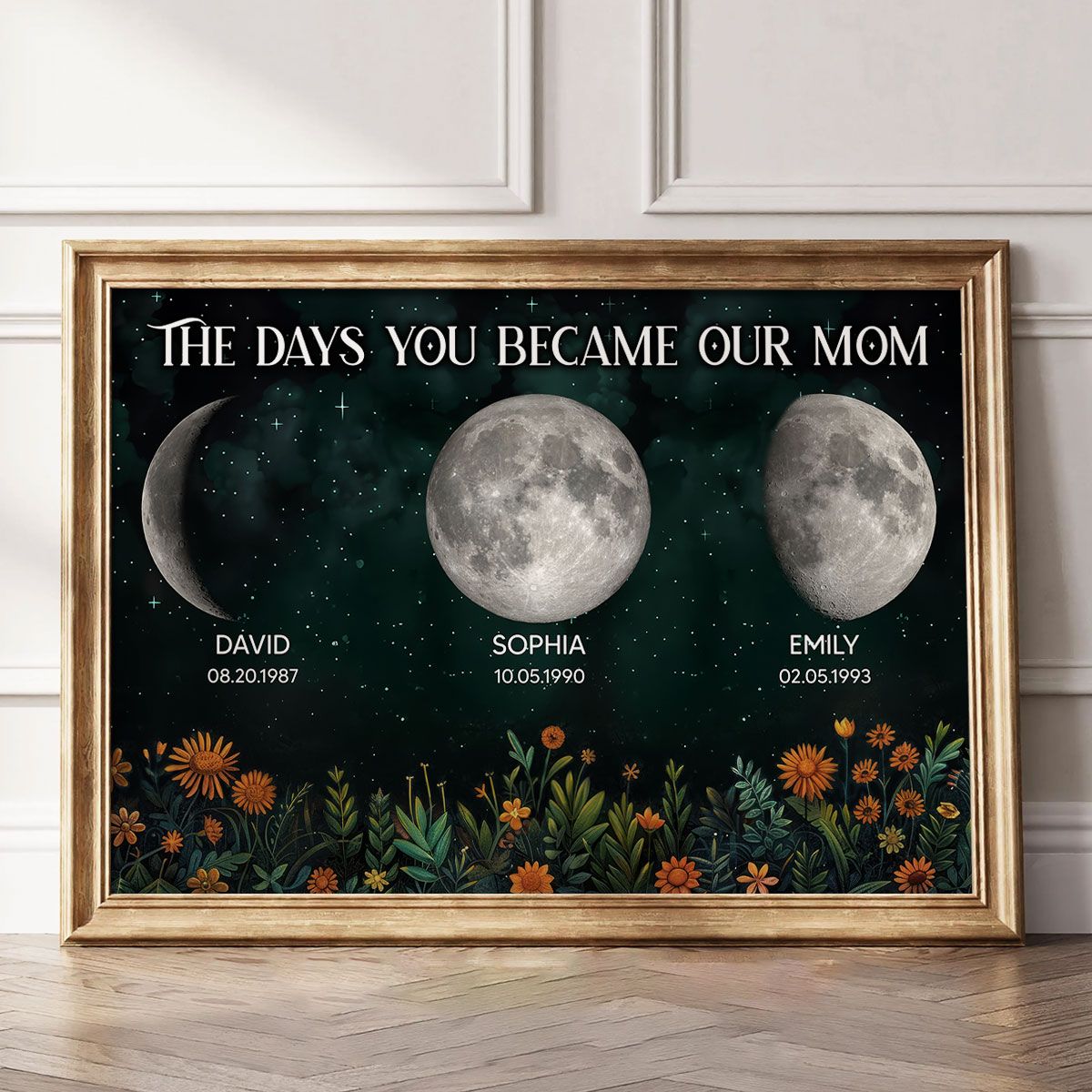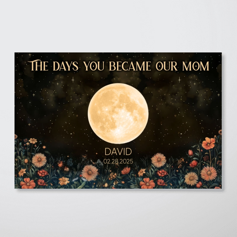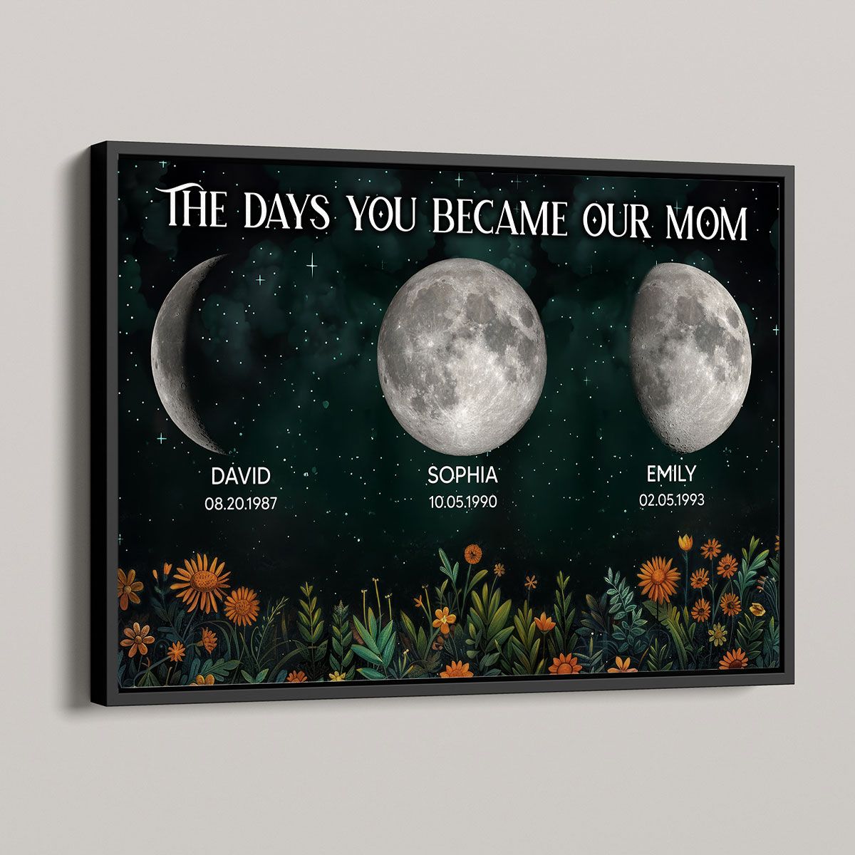 Vintage Flowers The Day You Become Mom Grandma Custom Birth Moon Phase Personalized Canvas, Mother's Day Gift