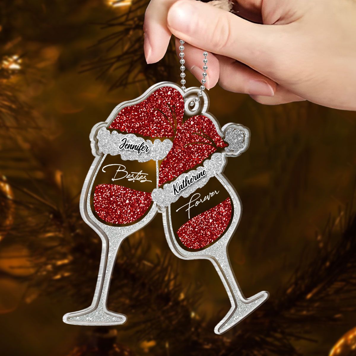 Wine Glass Cheers Partners In Wine Besties Personalized Acrylic Ornament