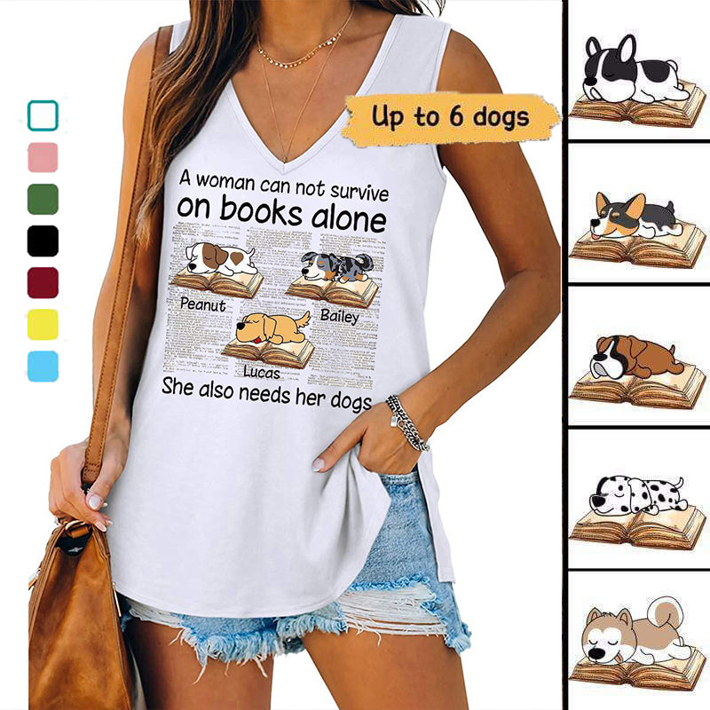 Woman Book And Sleeping Dogs Personalized Women Tank Top V Neck Casual Flowy Sleeveless