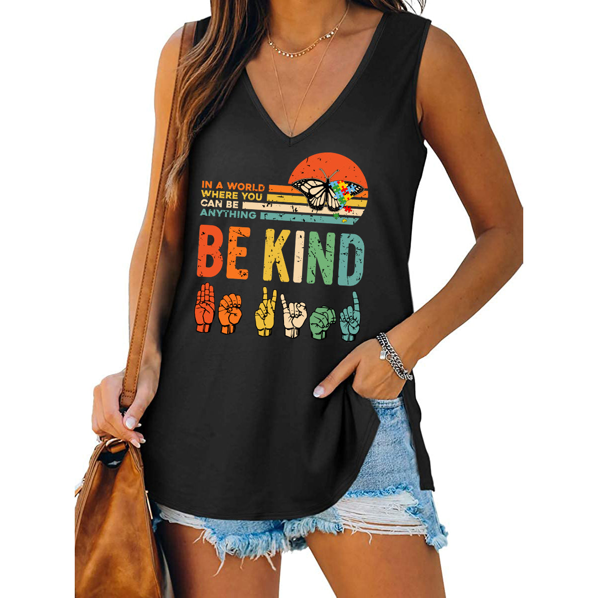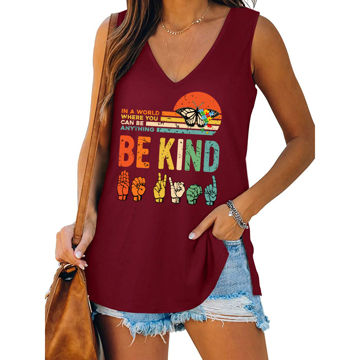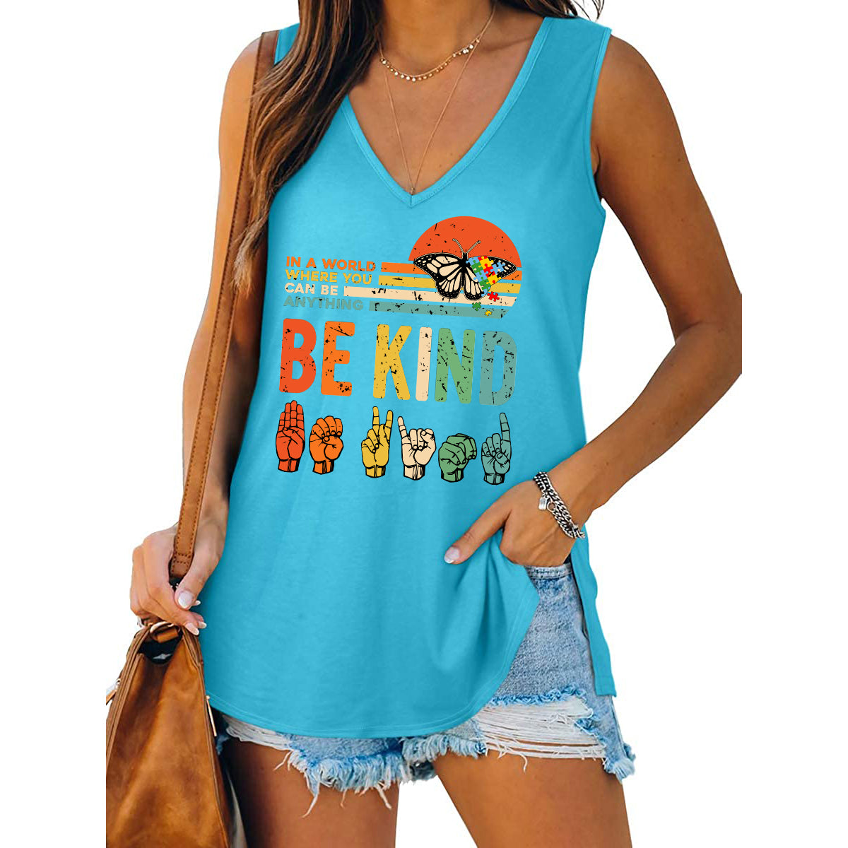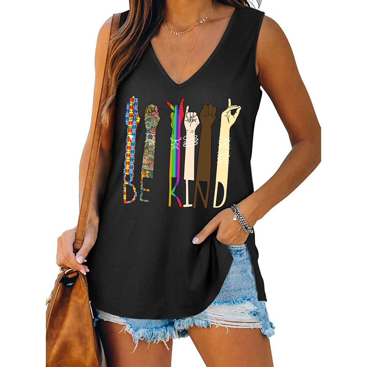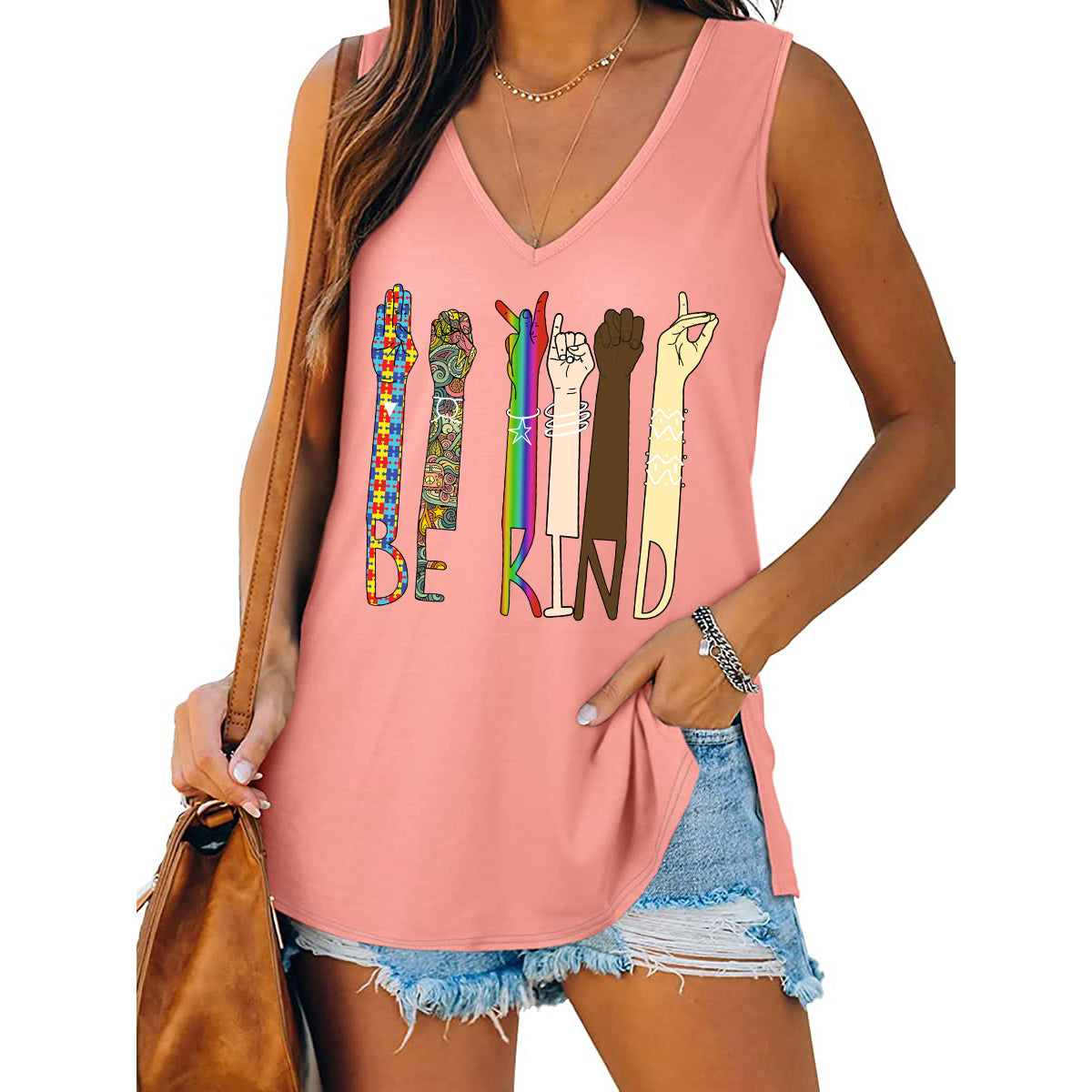 Womens Be Kind Tank Top V Neck Casual Flowy Sleeveless