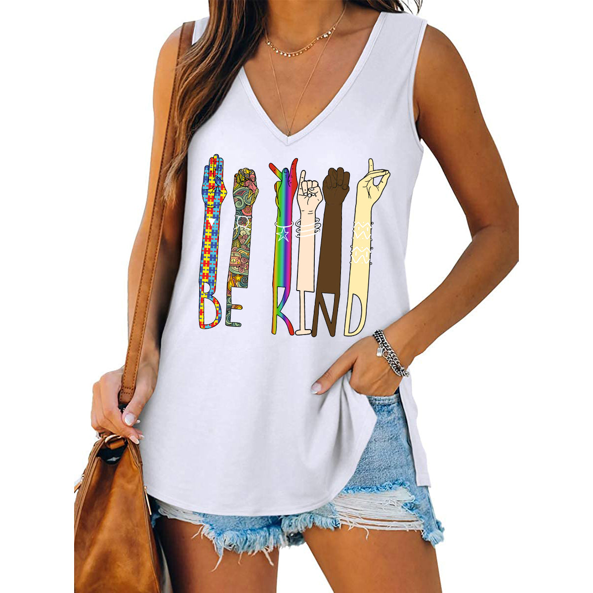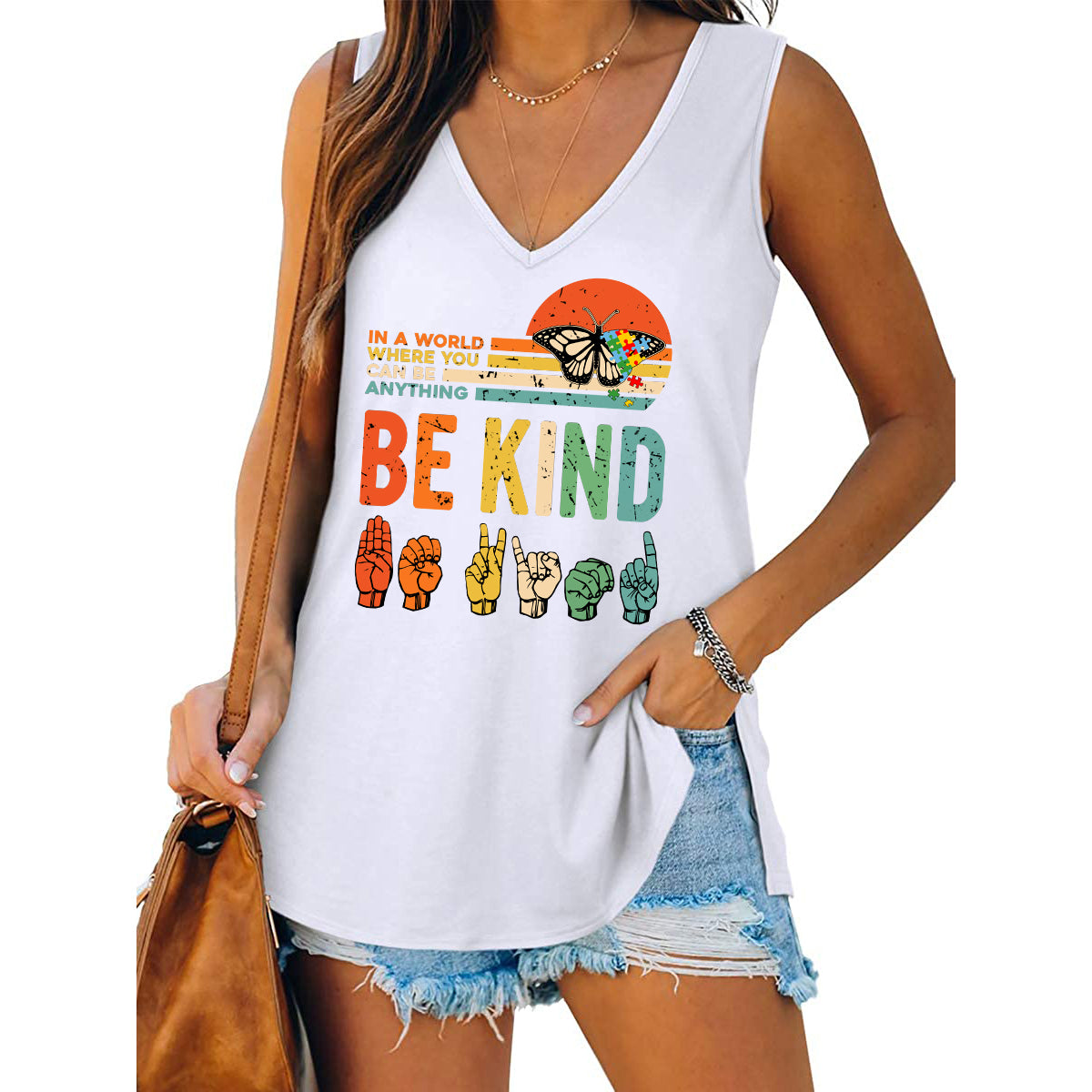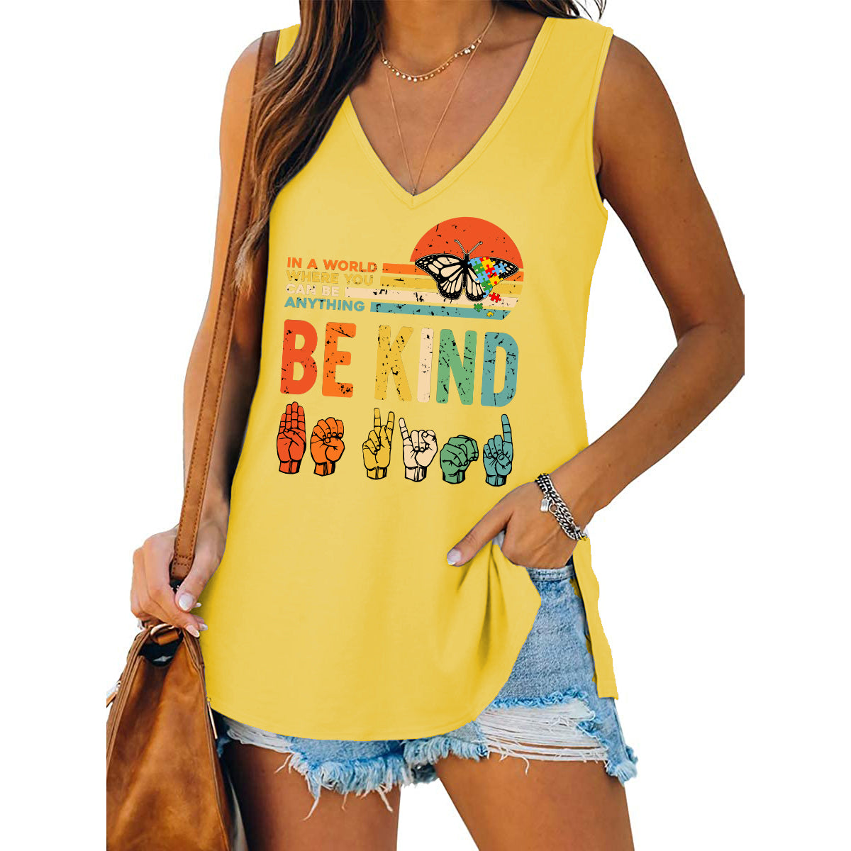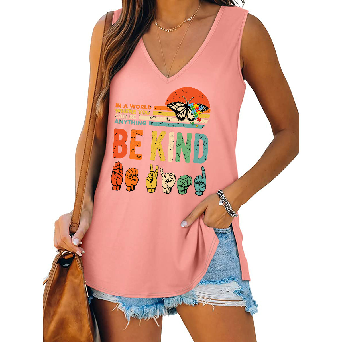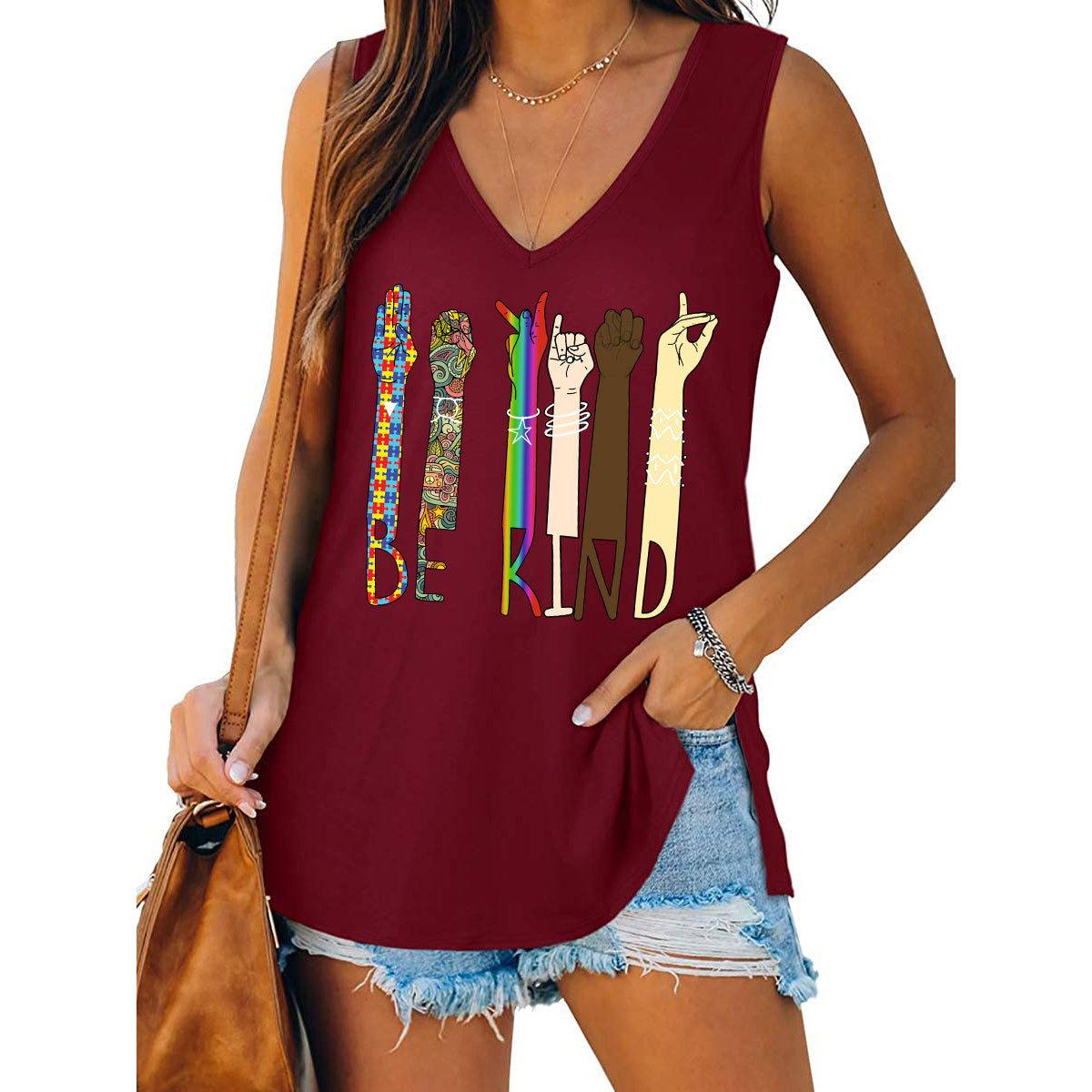 Womens Be Kind Tank Top V Neck Casual Flowy Sleeveless