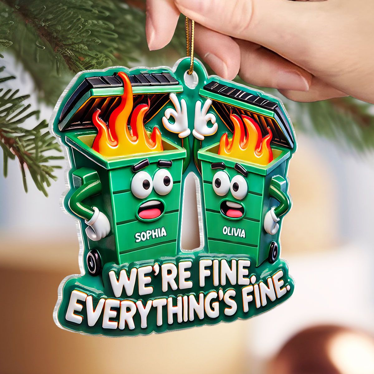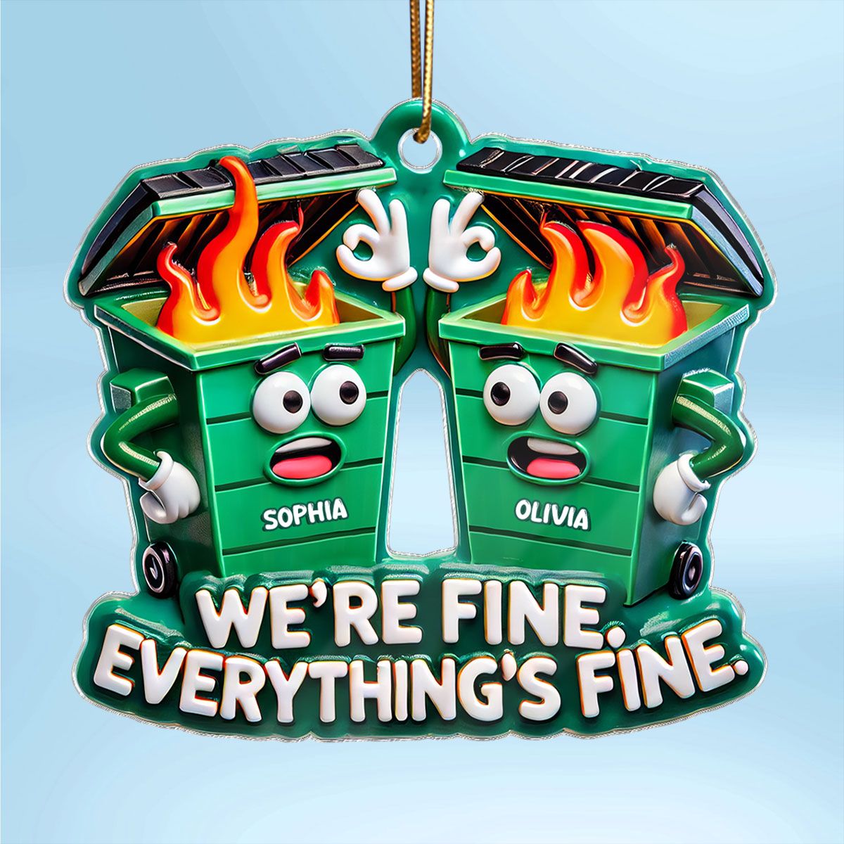 Work Bestie Dumpster Fire Funny Gift For Colleagues Personalized Acrylic Flat Ornament