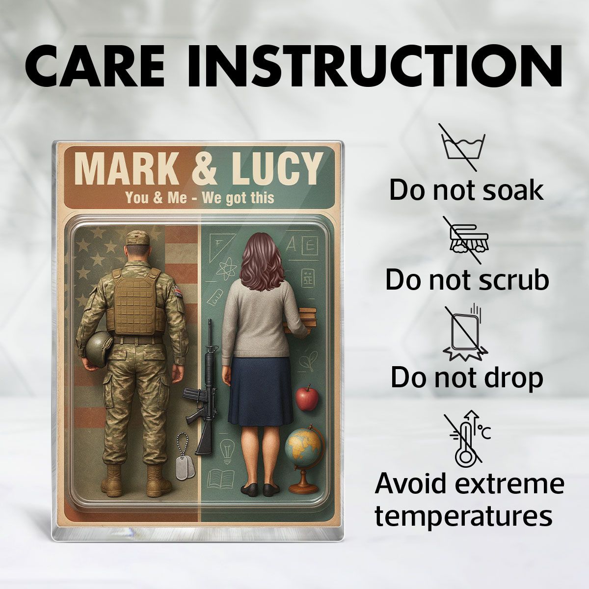 You & Me We Got This Military & Teacher Couple Realistic Figures Style Personalized Acrylic Block Plaque